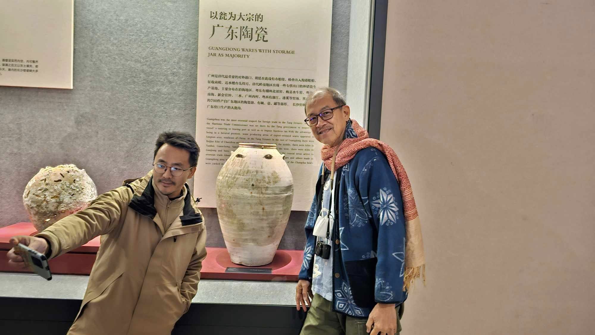 ชื่อจ้างซิงกั๋ว เป็นนักวิจัยเครื่องถ้วยฉางชาประจำที่นี่