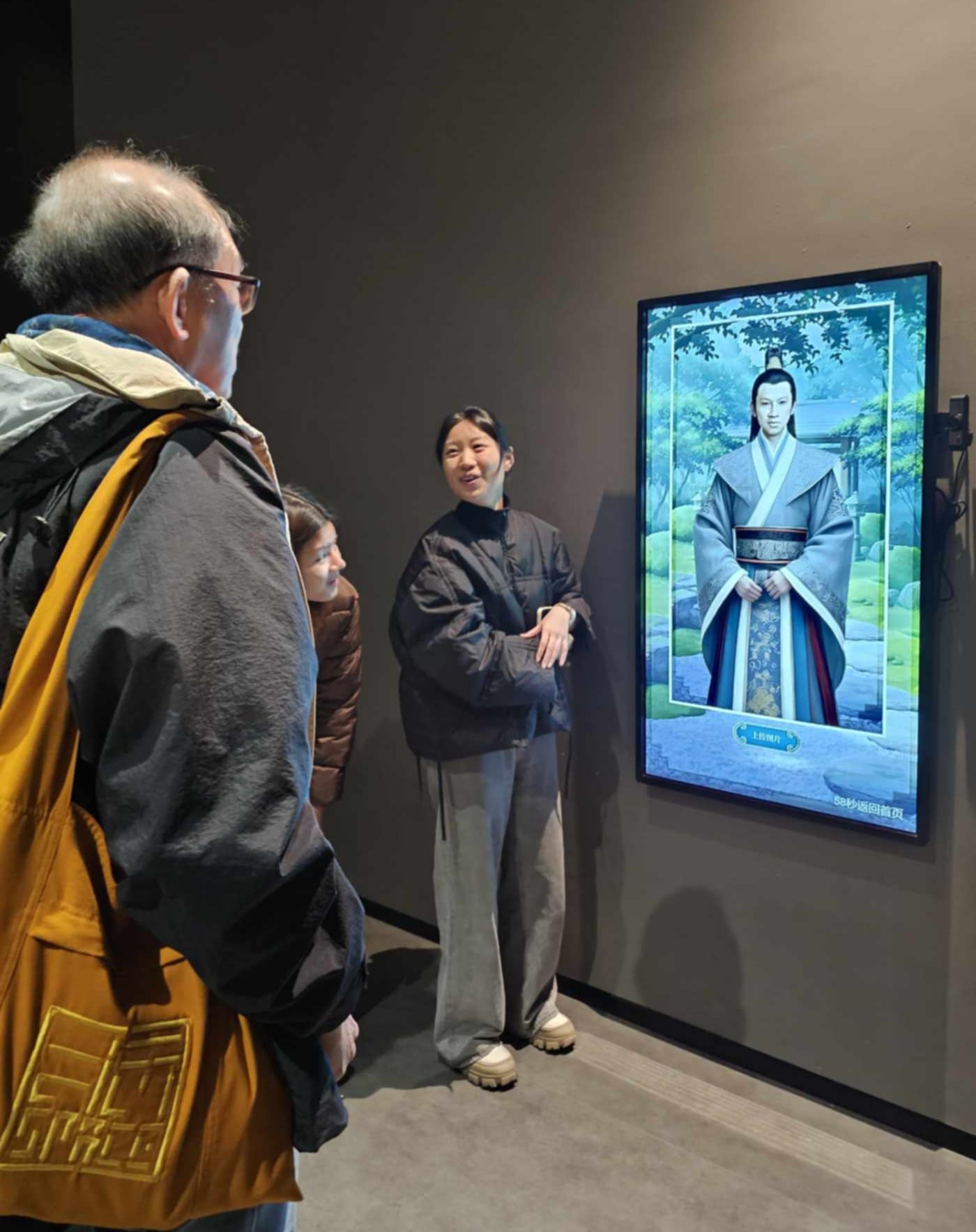 ที่กลางพิพิธภัณฑ์แห่งเจิ้งโจว เขาติดตั้งจอนี้ไว้ให้คนถ่ายรูป