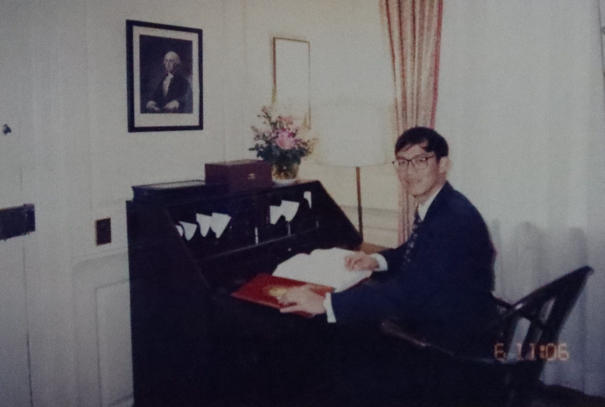 แรกถึงเขาให้ลงสมุดเยี่ยมพร้อมกับบอกว่าเก้าอี้นี้สมเด็จพระเทพเพิ่งจะประทับนั่งครับ