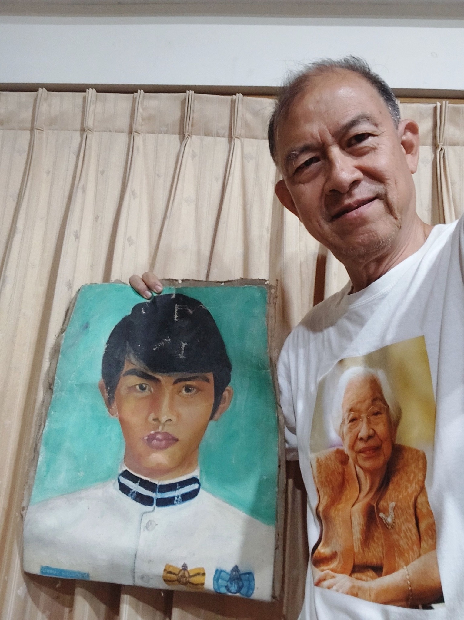 กับรูปน้าพานั่งบนเก้าอี้มุก ตอนนี้แขวนอยู่ในบ้าน