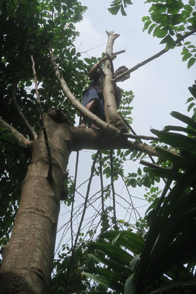 ใบและกิ่งไม้ทังหมด เอาไปกองไว้รอหมักเป็นปุ๋ยที่โคนชมพู่แดง มะมุด มังคุด มะม่วง แอปเปิ้ลเมืองไทย ที่คุณตาคุณป้า น้าพา แม่ ปลูกไว้ตรงชายกำแพง.