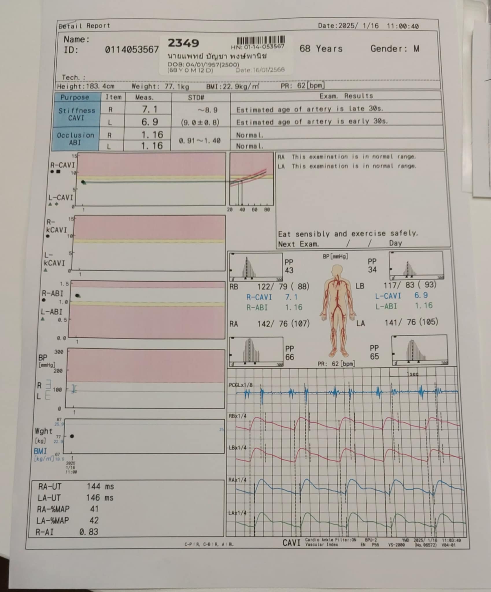 ส่วนหลอดเลือดก็ดูว่าดีถึงดีมาก ค่าประมาณออกมาว่าเข้าได้กับคนอายุ ๓๐ ต้น ๆ !!!
