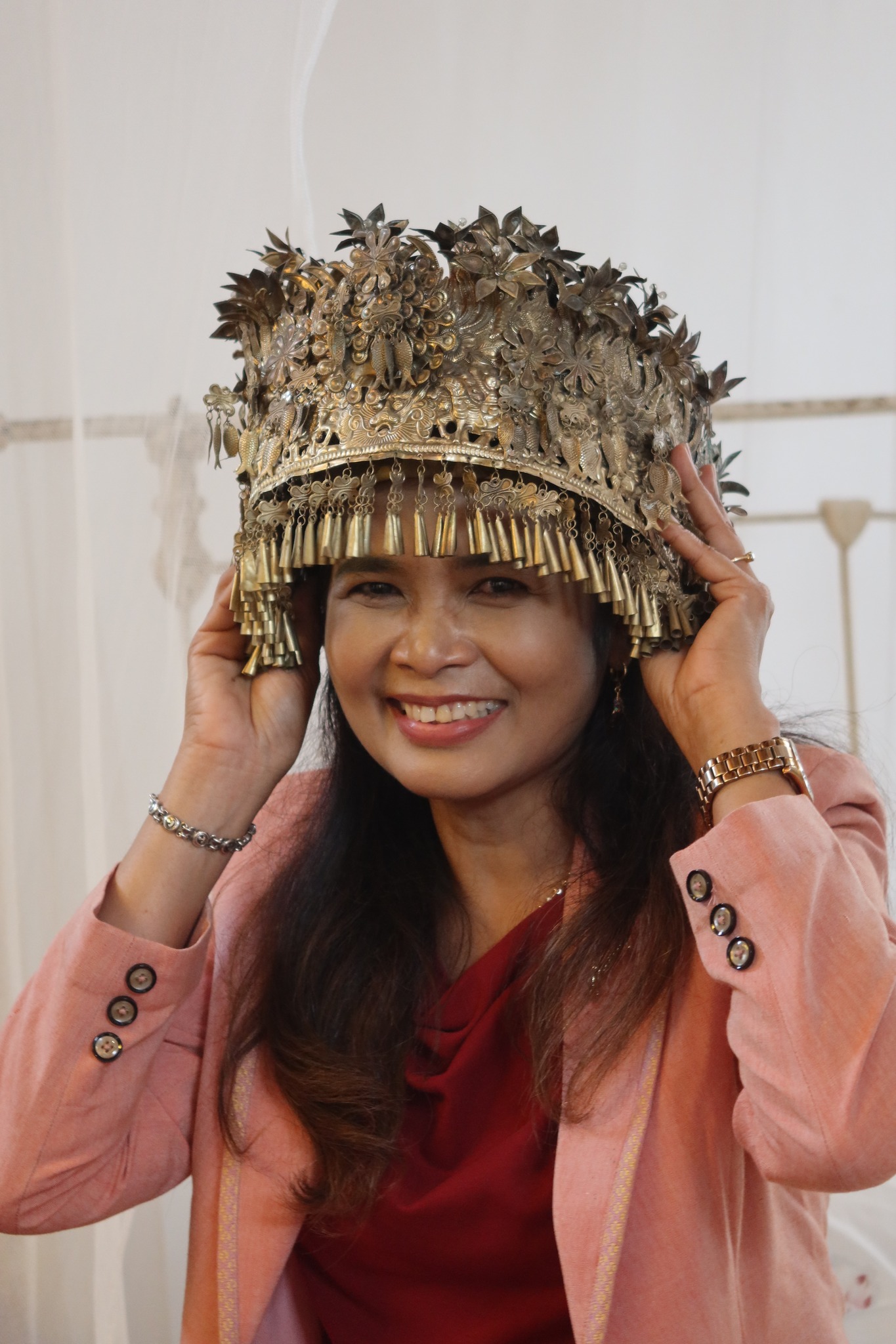ครั้นพอถึงห้องนอน พอดีมีศิราภรณ์ของเจ้าสาวบาบ๋าวางอยู่