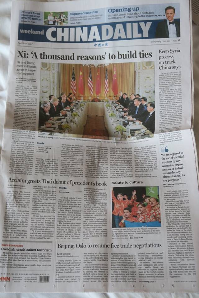 20170410_2 เมื่อวานซืนนี้ มี ๒ ข่าวไทยขึ้นหน้าหนึ่ง แทรกข่าวจีน-อเมริกา On Thailand, the 1st Page of the Papers