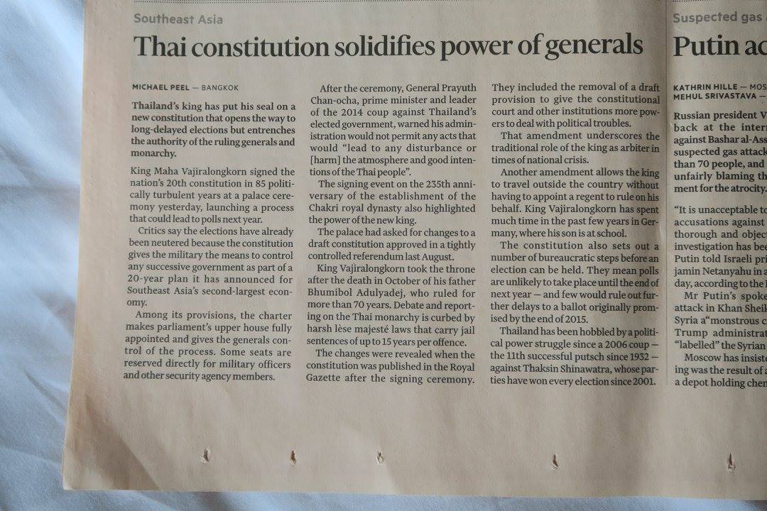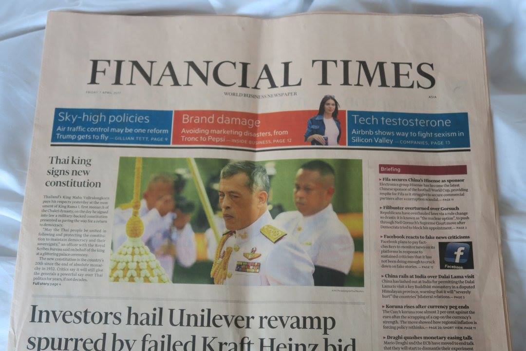 Financial Times ลงข่าวพระราชทานรัฐธรรมนูญฉบับที่ ๒๐ ของไทย พร้อมภาพพระเจ้าอยู่หัว