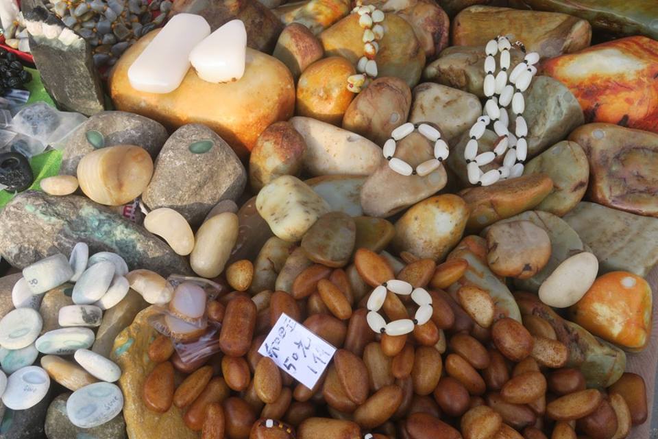 สอง เรือนแถวอย่างร้านจีนแต่ก่อน มีอยู่สามสี่แถว ขานนี่นั่นโน่น โดยเฉพาะหยกกับหินสีต่าง ๆ