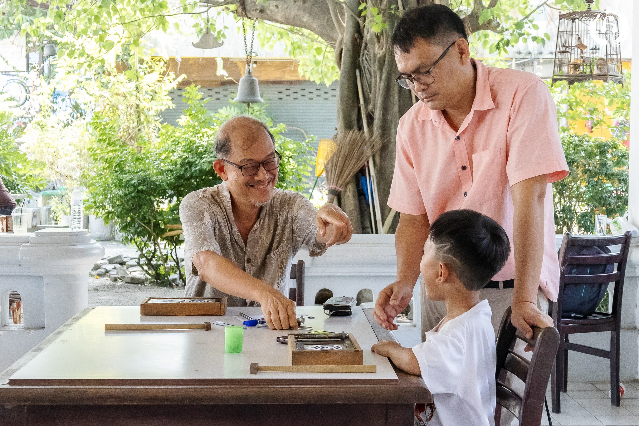 โต๊ะเคาะนี้เรียกว่าเคาะกันเป็นทีม ตั้งแต่ย่าง ๘ ขวบยัน ๘๕ ขวบครับ