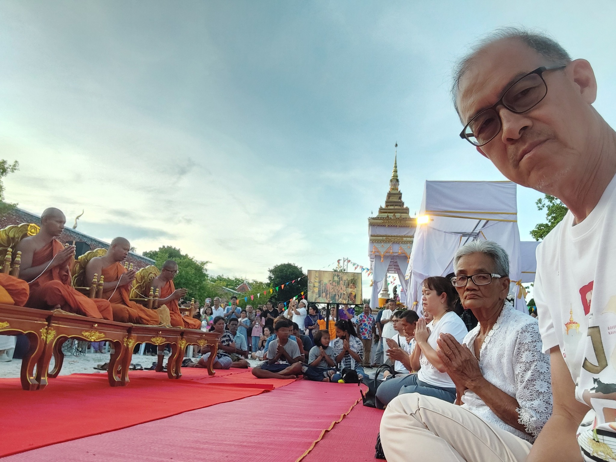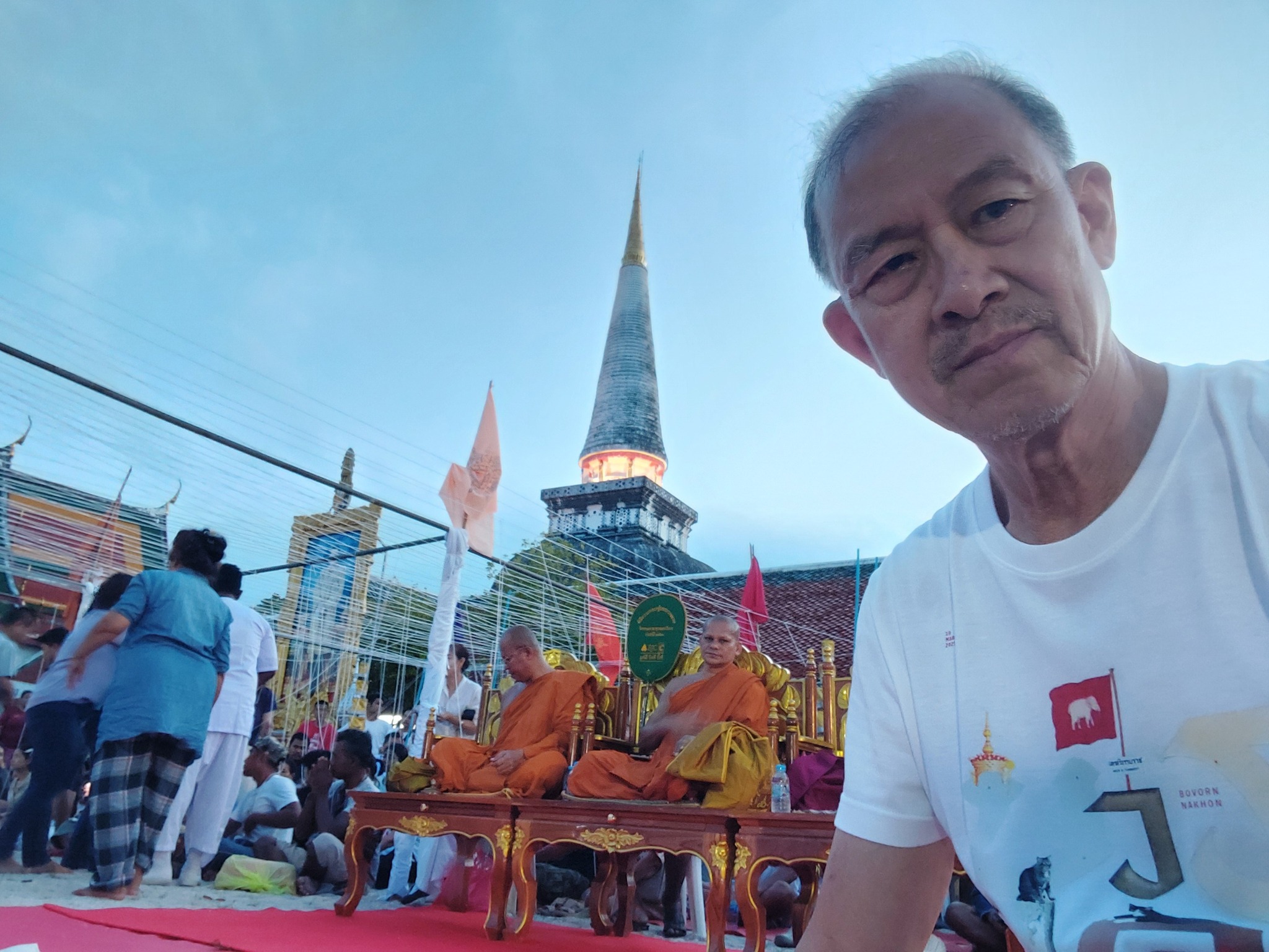 ส่วนผมนั้น แม้ไม่ได้รับไม่ได้โปรย แต่ได้ไปนั่งภาวนาหน้าพระธาตุ