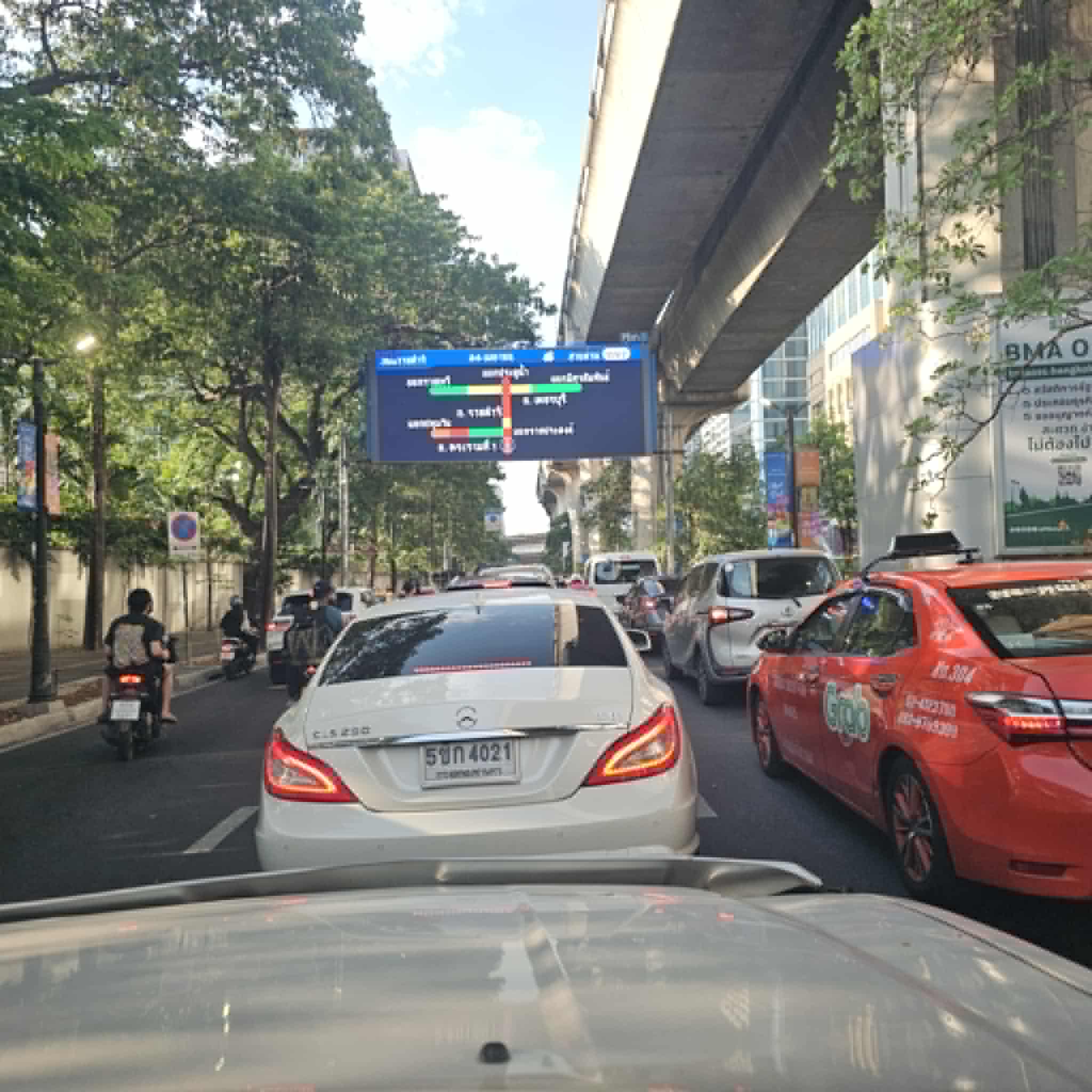 เดินไปยืนรออยู่ครูหนึ่ง บอกมาใหม่ว่ารถติดมากอยู่ที่ราชดำริ