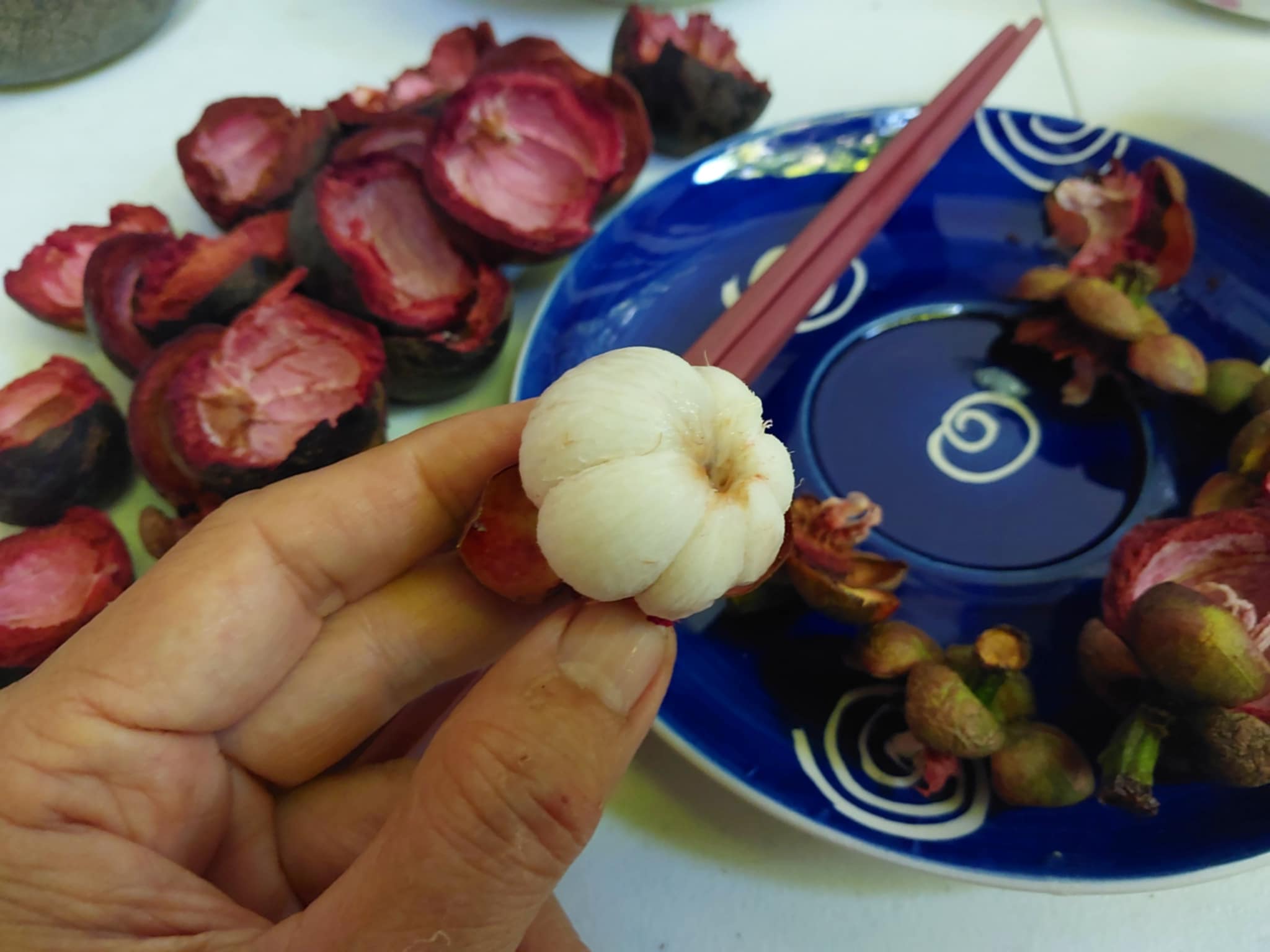 เช้านี้ลองปอกกิน ๒๐ ลูก แข็งเสียกินไม่ได้เพียง ๒ ลูกเองครับผม
