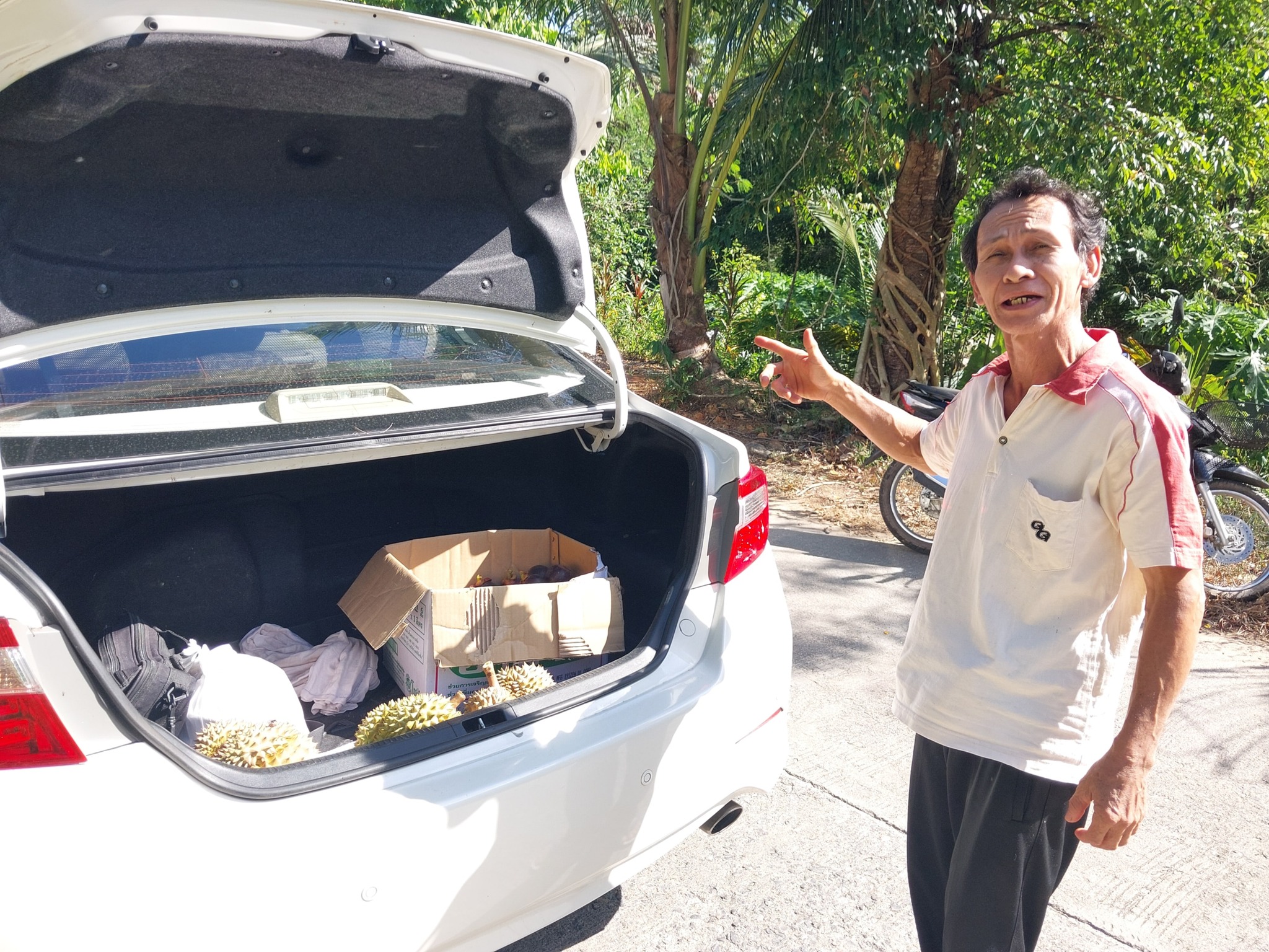 คนหลังคือผู้ใหญ่ปูน บอกว่ากำลังจะไปเอาเรียนมาฝากให้ไปกินกัน