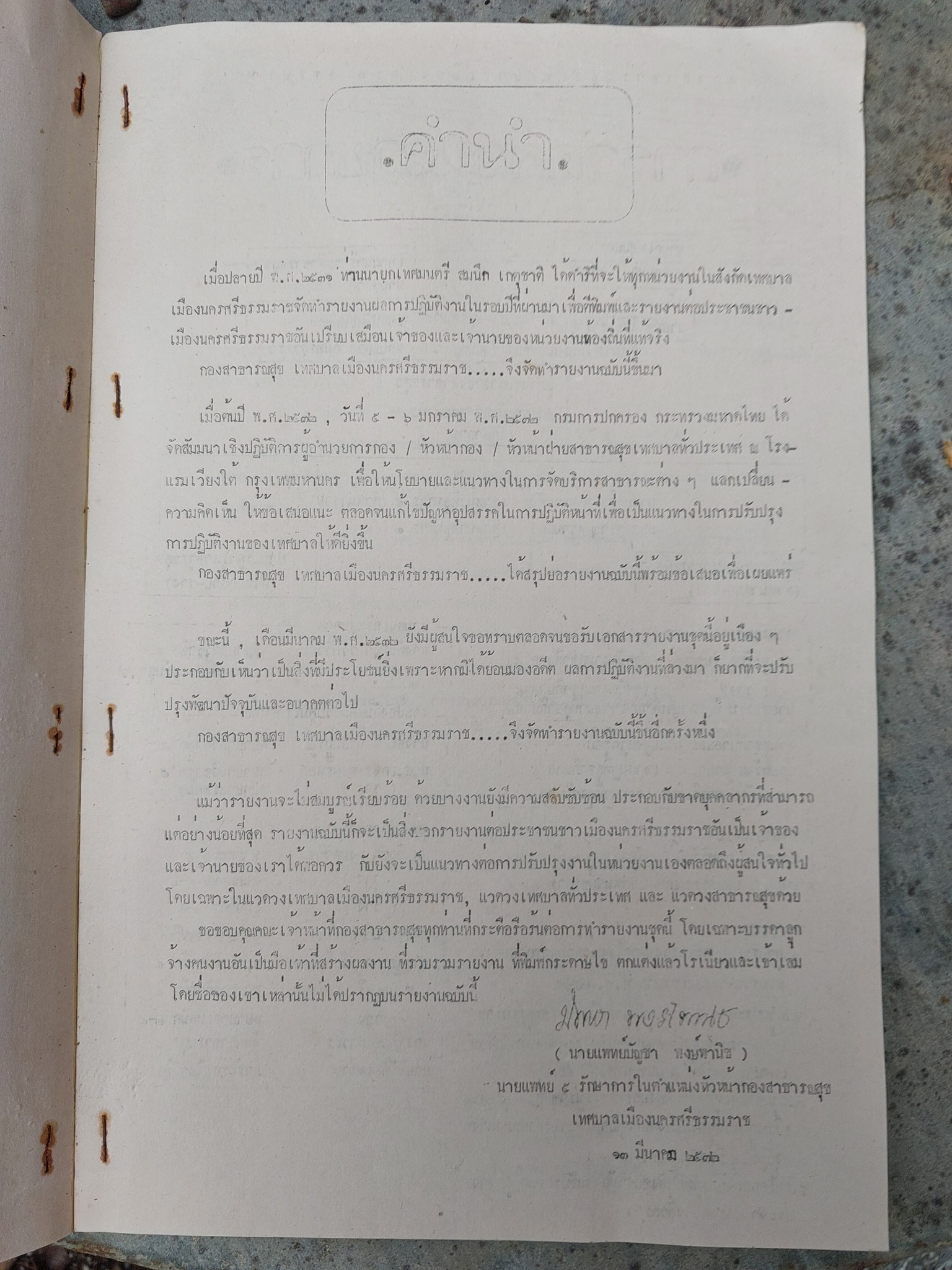 นี้รายงานสาธารณสุขเทศบาลนครเมื่อปี ๓๑