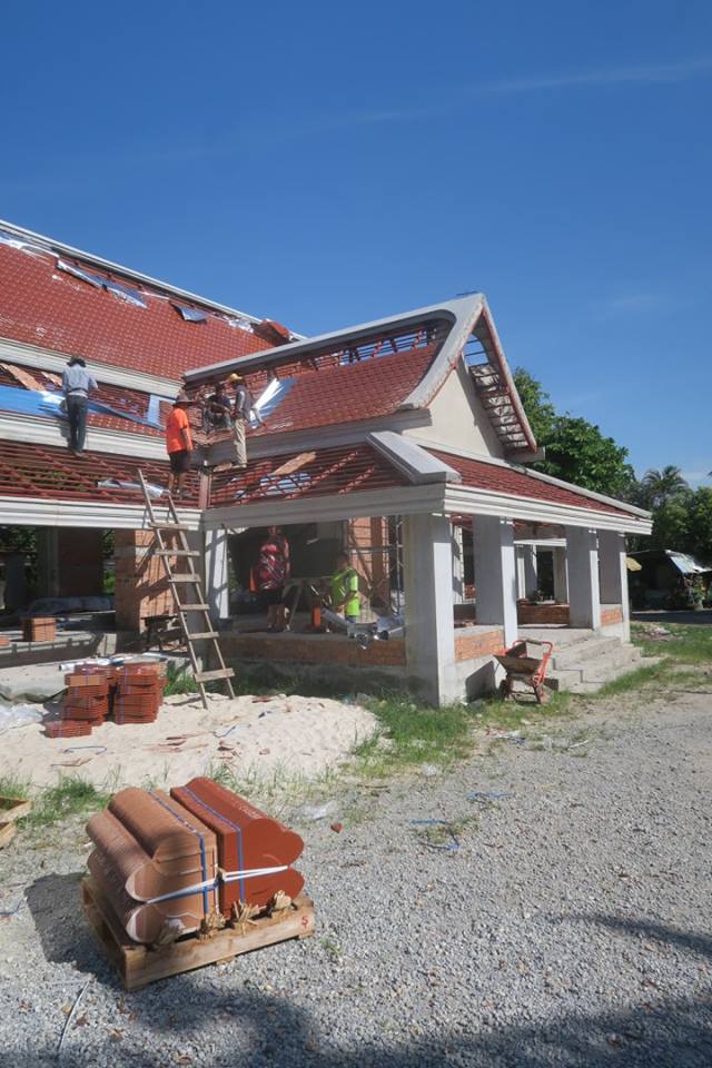 แม่ครับ เขาเริ่มมุงหลังคาโรงธรรมที่ศรีทวีแล้ว