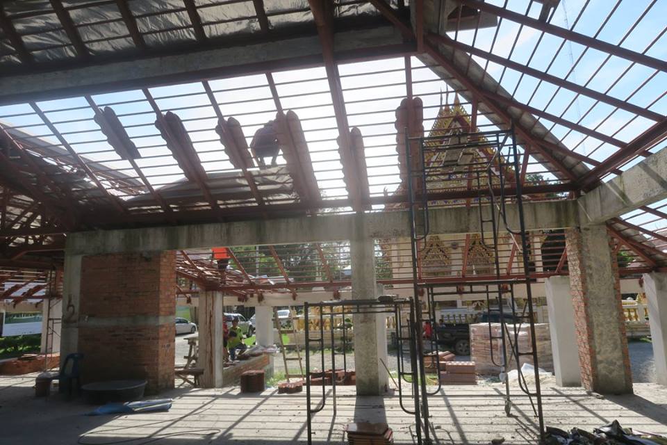 20170601_6 เมื่อ ๘ ช่าง กำลังต่อตัวกันมุงหลังคาโรงธรรมที่ศรีทวี 8 Folds of Roofing the Dhamma Hall