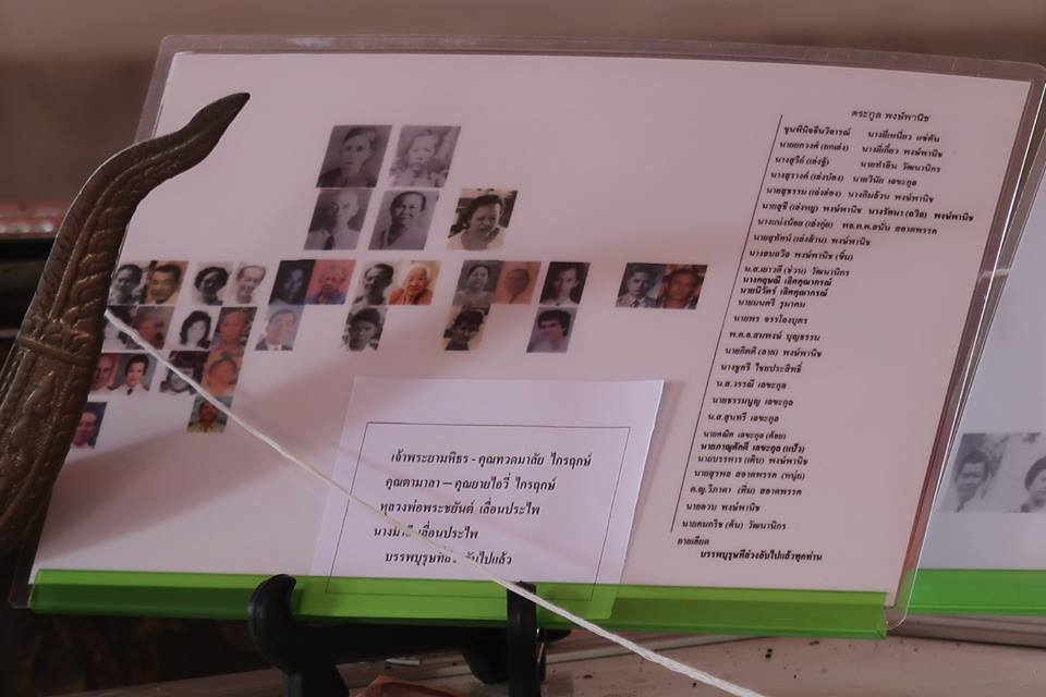 พร้อมกับป้ายชื่อพร้อมรูปของบรรพชนทั้งสองสายสกุล