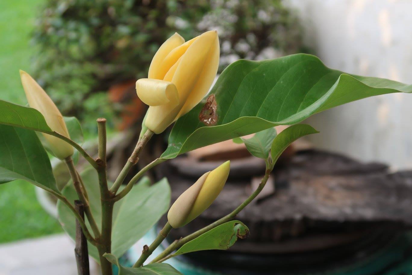 พอดีตื่นมาตามดูดอกจำปายักษ์ที่เพิ่งได้มา