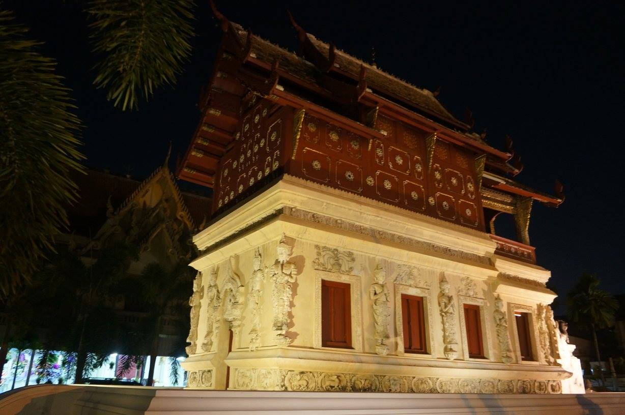 รวมทั้งที่หอไตร ฉายไฟให้เล่นเงางดงามดี.