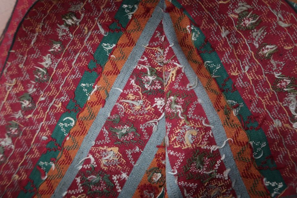 ผืนแรก เป็นผ้าตุ้มของผู้บ่าวภูไทเมืองกาฬสินธุ์ ห่มตุ้มไปในการสำคัญ รวมทั้งยกขันหมาก-แต่งงาน ผืนนี้ผมห่มเองครับ อีกผืนให้เจ้าบ่าวไปนานแล้ว เมื่อครั้งบอกให้รีบหาสาว