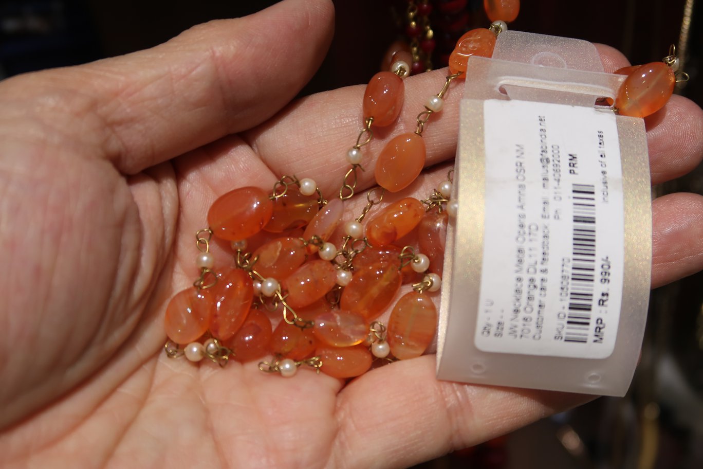 เขาบอกว่าเป็นลูกค้าต่างชาติคนที่ ๒ ของร้าน เป็นสาขามาจากเดลี ส่วนกางเกงยีนส์และรองเท้าแตะนั้น ระหว่างรอเวลา ก็เลยคว้าจากอีกร้านธรรมดา ๆ