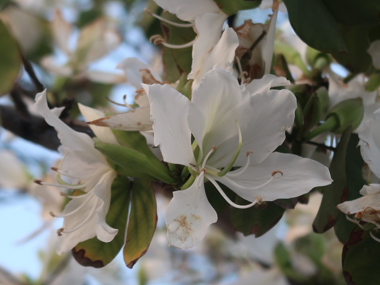 (bunchar.com บัญชาชีวิต 20180505_4) หลังจากเดินจนครบรอบถึงริมฝั่งน้ำและป้อมโน้น บนถนนระหว่างป้อมกับโรงแรมที่พัก ดอกไม้นี้ กำลังบานสพรั่งอยู่ ๒ ฝั่งถนน บ้นเราก็มีแต่ว่าคนละชนิดพันธุ์ ของที่นี่ ต้นเป็นพุ่มแน่นกำลังดี กิ่งไม่ห้อยย้อยจนเกะกะเกิน แถมออกดอกแน่น ไม่แพ้ซากุระกะชมพูพันธุ์ทิพย์และเหลืองอินเดีย แต่ที่แน่กว่า คืออยู่นานกว่าด้วย เจ้าพืชนี้ มีมากในทุกภูมิภาคของไทยเรา ใบเป็น ๒ ปีก ฝรั่งเรียกว่า Butterfly Tree แต่คนไทยเราเห็นเป็น ๒ ซีก จึงเรียกว่า "เสี้ยว" ชื่อวิทยาศาสตร์ ว่า Buahinia (ถ้าจำไม่ผิด) แต่ในสมัยที่นิยมปลูกกันในเมือง ราว ๆ ๑๐๐ ปีที่แล้ว เกิดการกำหนดชื่อให้ดูดี มีหลายสี-สายพันธุ์ รู้หรือยังครับ คือ "กาหลง-ชงโค-โยธะกา ฯลฯ" ไงครับ