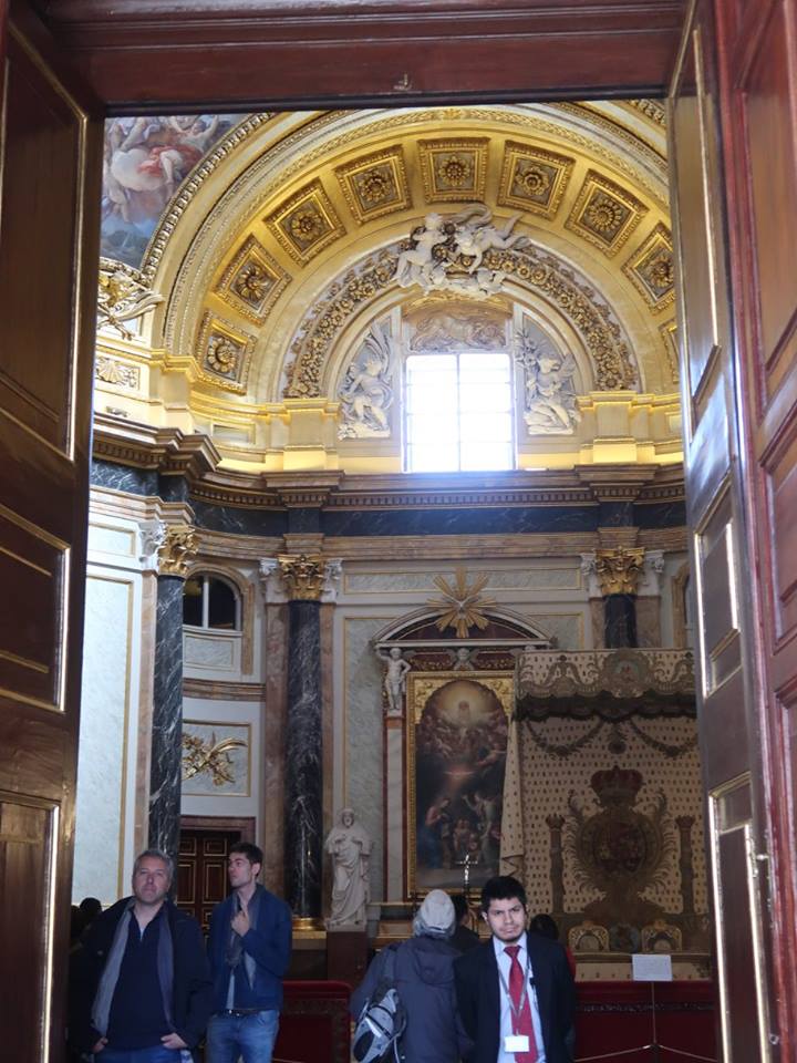 (bunchar.com 20180503_4) ตลอดทั้งพระบรมมหาราชวังแห่งนี้ที่ได้เดินดู และเขาห้ามถ่ายรูปทั้งนั้นั้น มีหลายสิ่งอย่างให้ได้ครุ่นคิด แต่เอาไว้กลับไปทบทวนมากกว่านี้ รวมทั้งไปคุ้ยดูกองเงินตราสเปนในกรุของคุณตา เพราะดูเหมือนว่า ทั้ง คาร์ลอส และ เฟอร์ดินานด์ คือรัชกาลที่เหรียญเหล่านี้ถูกขุดคุ้ยเอาเงินจากอเมริกา มาทำเหรียญออกค้าทั่วทั้งโลก อันต่อเนื่องจากการที่ราชินิอิซาเบลล่า กับ เฟอร์นานโด คู่นี้ ส่งโคลัมบัสไปหาอินเดียแล้วเจออเมริกา จนกลายเป็นเจ้าโลกแห่งแอตแลนติคและแปซิฟิค รวมทั้งการมายึดครองหมู่เกาะหนึ่งแล้วขนานนามตามชื่อพระเจ้าฟิลิป ว่า ฟิลิปปินส์ จนแม้ห้องที่พระเจ้าฮวน คาร์ลอส เพิ่งสละราชสมบัติ เมื่อปี ๒๐๑๔ นี้ มีจังหวะหนึ่งที่หน้าหอสวดประจำวัง ทำเป็นรูปของควีนอิซาเบลล่า กับ พระเจ้าเฟอร์นานโด้ ผู้เข้ารีตคาธอลิค เขาปล่อยให้ถ่ายรูปได้ ก็เลยเก็บเอามาเป็นเครื่องระลึกนิด ๆ ครับ เทียบกับอีก ๓ คู่ของพี่น้องผม วิเศษกันคนละอย่างขอรับ.