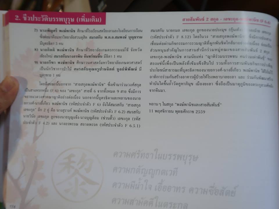พ่อครับแม่ครับ การไปยะลา-ท่าสาป รอบนี้ของเต้ย นอกจากการไปร่มงานอาอี๊ด #มนูเลขะกุล แล้ว ยังขอพี่โต Banpot Pongpanich กับพี่ ใหญ่ พงษ์พานิช และพี่อี๊ด #อดิศัยพงษ์พานิช ว่าขอไหว้ก๋งที่ฮวงซุ้ย กับก๋งที่วัดถ้ำ รวมทั้ดูบ้านที่ท่าสาป กับร้านค้าทั้งหลายของรุ่นลูก ๆ ของก๋งในย่านตลาดยะลา เฉพาะที่ท่าสาปนั้น เต้ยขอลงที่ตีนสะพานแล้วเดินข้ามไปคนเดียวเงียบ ๆ แล้วคิดถึงเมื่อครั้งยังพึ่งแพของก๋งทั้ง ๒ จนถึงสมัยที่พ่อเกิดและอยู่กันกับพี่น้องที่นั่น พี่ ๆ บอกกันแต่ว่า "รู้ม่ายว่าย่ารักพ่อมากแต่เพื่อน ไอ้ไหร ๆ ก็ให้พ่อน้องมากหวาลูกคนอื่น ขนาดตางค์ยังลักหยบก๋องให้พ่อน้องมากหว่าพ่อแม่ของพี่ ๆ อย่างส่งไปเรียนนอกนี้ก็คนเดียวนี้แหละ !!!" พอพ้นบ้นก๋ง พี่ใหญ่พี่อ๊๊ดบอกว่า "ยังมีเวลา อิพาไปแลบ้านย่าทั้ง ๒ ที่ยังอยู่" นับเป็นความรู้ใหม่หมด เพราะที่เลยบ้านก๋งซึ่งพังร้างแล้วนี้ ไปตามริมแม่น้ำปัตตานีไม่กี่สิบเมตร ยังมีย่านชุมชน #เมืองท่าเก่า ตั้งอยู่ เจอบ้านตึกใหม่หลังหนึ่ง กับบ้านไม้เก่าอีก ๒ หลัง แต่ที่สำคัญคือ มีบ้านตึกเก่าตั้งอยู่อีก ๒ หลัง เป็นบ้านรุ่นเดียวกันกับบ้านก๋ง แถมเป็นบ้านเดิมของ #ย่ายกเลี้ยง และ #ย่ายกอิ้ว พี่สาวและน้องสาว ของ #ก๋งยกวงศ์ เสียด้วย จำได้ว่าตอนที่แม่ให้ทำทำเนียบญาติ #ตระกูลพงษ์พานิช ตระกูลพงษ์พานิช แล้วนัดรวมญษติกันนั้น ก็ได้พยายามสืบเสาะและสานกันมาจนได้ครบ ครั้น พี่หมอ Osoth Lekagul กับคณะ ทำทำเนียบสกุลเลขะกุลและสายสัมพันธ์ ขอให้พวกเราช่วยเขียนชีวประวัติบรรพบุรุษ เน้นพ่อกับแม่ แต่พวกเราเห็นว่า น่าจะเขียนแทนพ่อ-แม่และลุงป้าน้าอา ในนามของสายสกุลพงษ์พานิชทั้งคณะ แล้วขอพี่ ๆ น้อง ๆ ทุกสายช่วยกันเขียนออกมาตามนี้ การได้ไปเห็นรกรากของ ทั้ง "๓ ยก: เลี้ยง-วงศ์-อิ้ว" รอบนี้ กำลังกะว่าจะเอามาประมวลเป็นอีกงาน ในวาระที่พ่อ #สุธีพงษ์พานิช มีวาระครบ ๑๐๐ ปี ๑๖ สิงหาคม ๒๕๖๑ นี้นะครับ