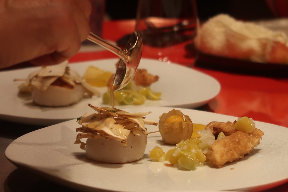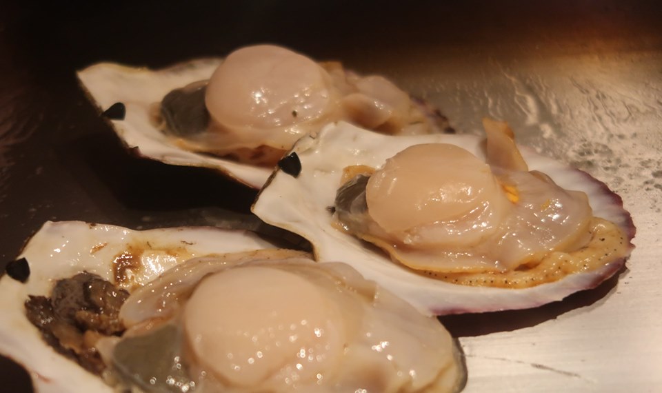 หลังจบไข่ปลาคาเวียร์ เขาก็เอาหอยเชลล์แอออโมรินี้มาย่าง