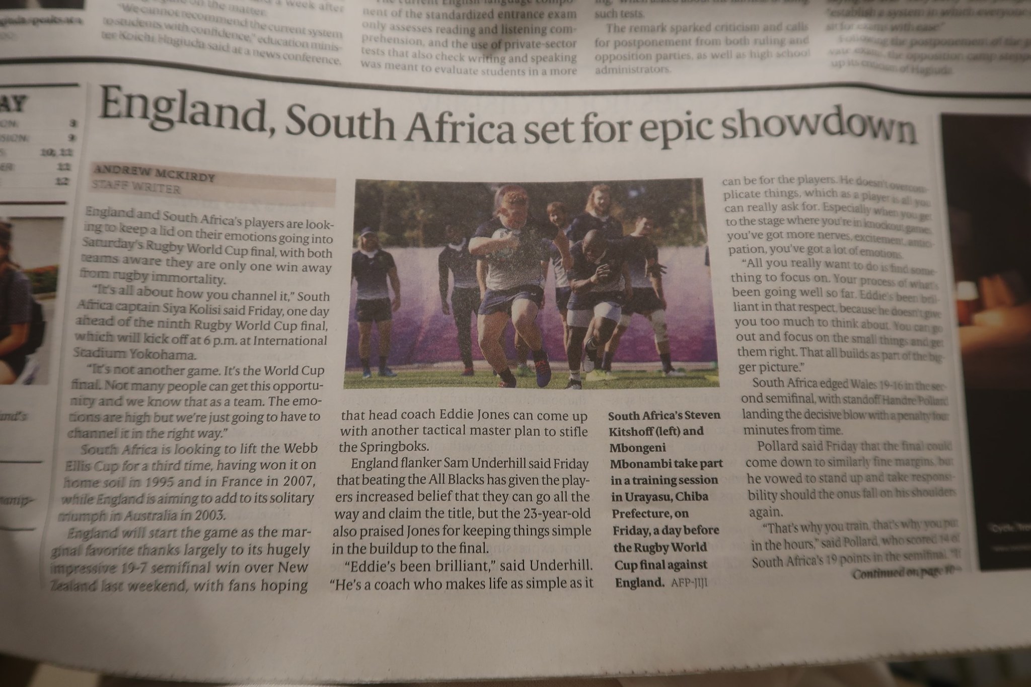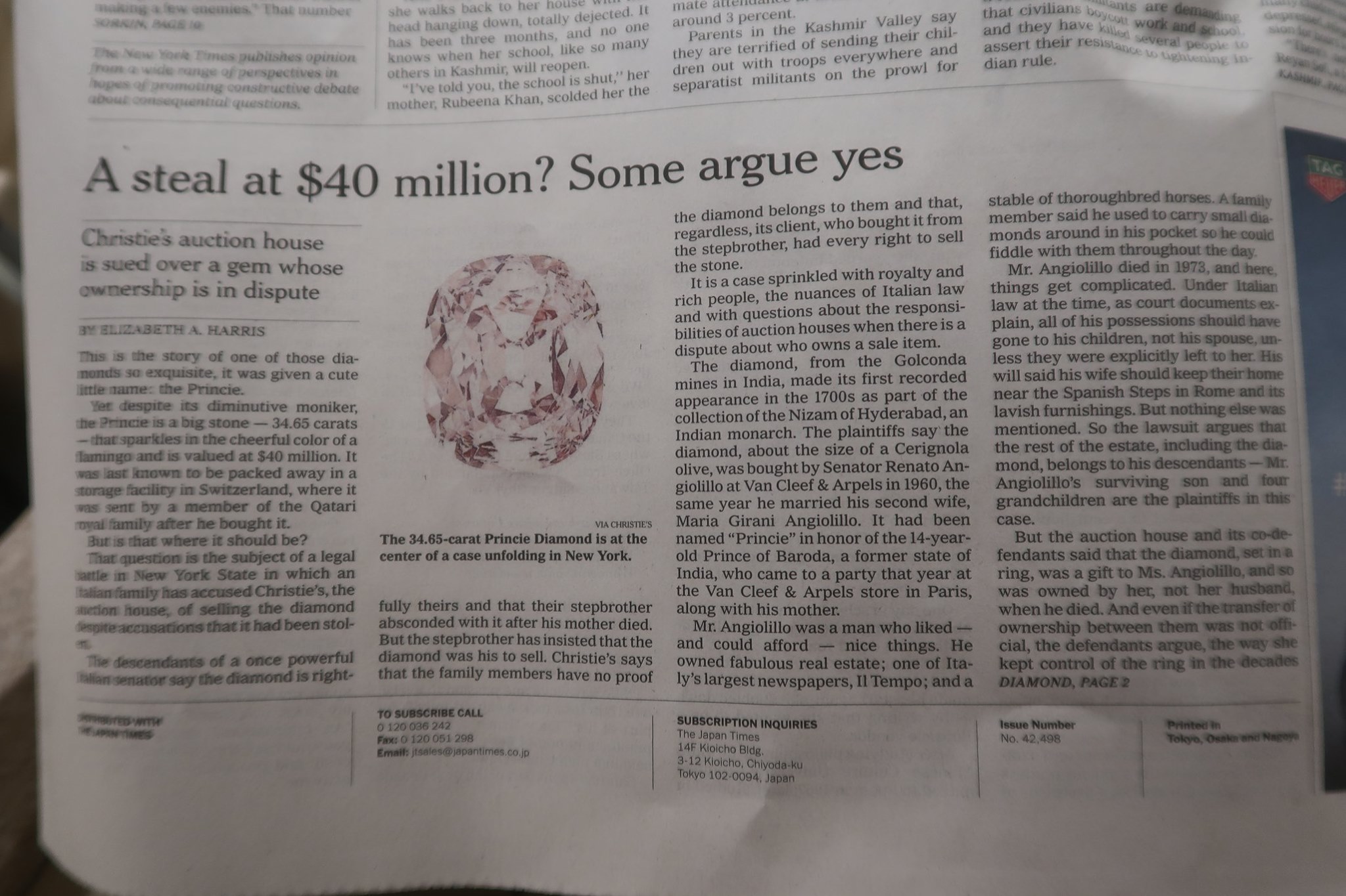 ได้เวลากลับบ้านเสียที สวัสดีโตเกียว นสพ.วันนี้ มีแต่เรื่องรักบี้ที่จะชิงกันวันนี้ ทิ้ง ๔ คนไว้ดู พวกเรากลับก่อน ๖ คนครับ อีกข่าวน่าสนุก เรื่องเพชรสชมพู ๔๐ ล้านดอลล่าร์ที่คริสตี้ประมูลขายเจ้าแห่งกาตาร์ไปแล้วลูกของเจ้าของคนหนึ่ง บอกว่าลูกเลี้ยงที่เอาไปขายนั้นขโมยไปขี้เกียจอ่านยาวหัวข่าวเขาก็บอกว่าเรื่องของคนรวยล้นโลกทั้งหลายครับพวกเรานั้นซื้อแค่เกือกกับกระเป๋าเท่านั้นครับ