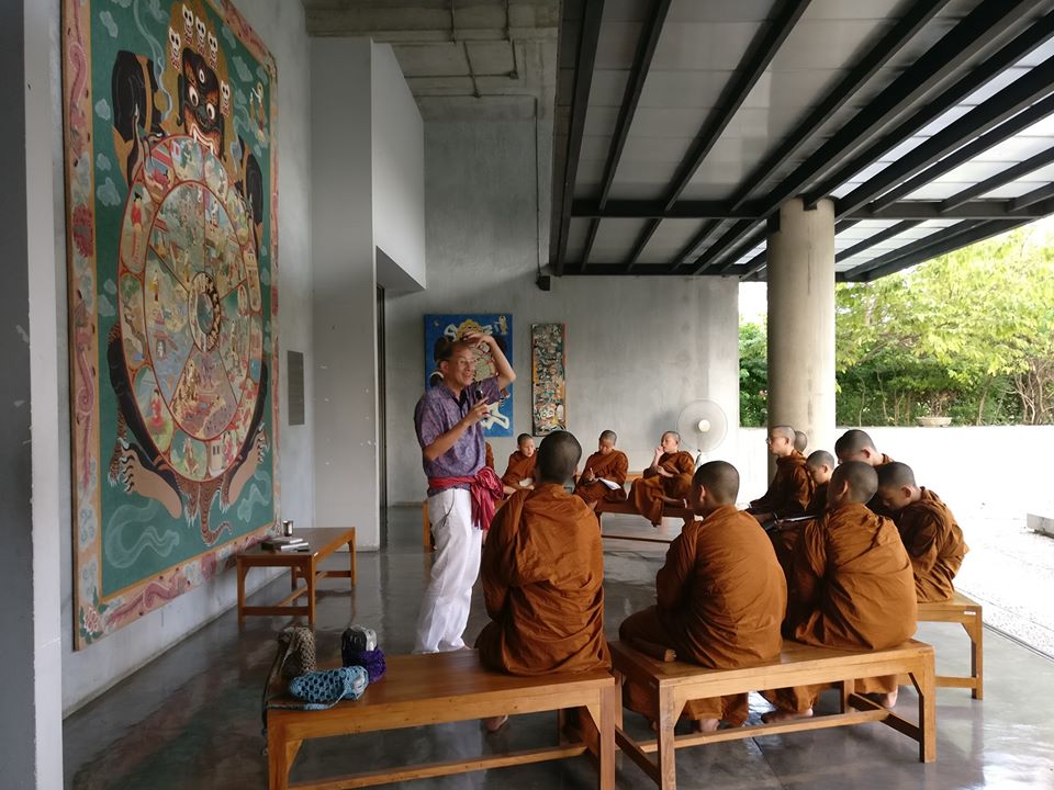 พระท่านกำหนดให้ผมต้องตอบคำถาม ๑๓ เณร ตอนบ่ายวันที่ ๒๓ ก่อนที่ท่าน อ.ชยสาโร จะมาตอบต่อพร้อมกับกิตติศัพท์ว่า เณรคณะนี้ ถามมากไม่รู้หยุดวันก่อนก็แย่งนักเรียนทุนมายาโคตมี ถาม ท่าน อ.ปสันโน เกือบหมดเวลาภายในเวลา ๑ ชม.ครึ่งความที่เณรมีอายุต่างจาก ๑๐ - ๑๘ ขวบแล้วยัง ๒ เณรจากมาเลเซีย ที่ไม่รู้ไทยผมจึงต้องใช้ภาษาปะกิดโดยมี ๑๑ เณรไทยเป็นตัวช่วยบอกบางคำที่ผมนึกไม่ทันผมประเมินต่ำ เริ่มสร้างความคุ้นกันด้วยถามนำเรื่องการกลัวผีที่ตัวเองก็เคยกลัว จนค่อย ๆ หายเมื่อไปเรียนหมอเพราะอยู่กับร่างอาจารย์ใหญ่กันเป็นปี บางคืนก็อยู่คนเดียวกับทั้ง ๒๕ ร่างก็ไม่เคยเจออะไรแม้กระทั่งเชิญกระโหลก แข้งแขนขา ไปนอนท่องบนเตียงจนหลับก็ไม่เห็นท่านหรือใครไหนมาหลอกมาหลอนจนไม่รู็จะกลัวอะไรจากนั้นจึงให้เณรถาม ...