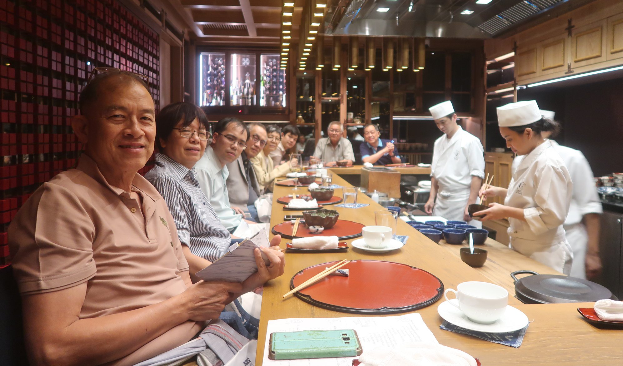 วันนี้ที่บ้าน มีน้อง ๆ ราชินี ๗๒ มาปีใหม่กันที่บ้านหลังเสร็จหารืองานที่สวนโมกข์กรุงเทพ ก็เลยกลับมาสมทบจึงถูกตามไปทำหน้าที่พี่ชาย แถมเกิดห่างกัน ๒ วันก็เลยโดนอวยวันเกิดเข้าด้วยตกค่ำพี่ ๆ พาไปเลี้ยงอีกอิ่มที่โอเรียนเต็ลเข้าโน่นเป็นร้านเปิดใหม่ไม่ถึง ๒ เดือน อยู่ในร้านลอร์ดจิมขายวันละ ๒ รอบ ๆ ละ ๑๐ ที่นั่งเมนูตายตัว เปลี่ยนเดือนละครั้งเขาช่างออกแบบให้จัดการได้ง่ายอะไรอย่างนั้นเป็นอาหารญี่ปุ่นจุ๊ก ๆ จิ๊ก ๆ ร้านแม่อยู่ที่ญี่ปุ่น นี้เป็นสาขาสอง สองแห่งนี้เท่านั้น ตอนเริ่มเขาเอาน้ำข้าวจากนากาโน่มารินให้ก็เลยจิบไปนิดนึง แจ่มเลยครับ