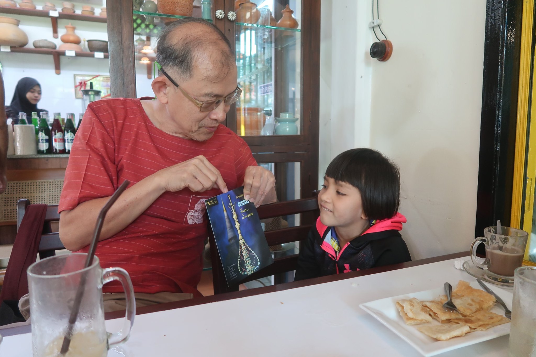 หลานปู่ "หนูมะยม" มาถึงนครทั้งที ถามว่าจะกินอะไรดี ? ขอโรตี ร้านน้ำชาบังบ่าว สาขา บวรบาซ่าท่าวัง ก็เลยจัดให้เอาหนังสือตามรอยธรรมที่เมืองนครไปฝาก พร้อมกับ ฯลฯ แล้วชี้ชวนดูนั่นนี่นิด ๆ สมหนูน้อยประถม ๑ โดยเฉพาะบาตรน้ำมนต์ศักดิ์สิทธิ์หนึ่งเดียวบนปลายยอดพระธาตุกับกรงแก้วทั้ง ๔ ของพุ่มข้าวบิณฑ์ที่มีดวงแก้วอยู่ ๙ ดวงโตเป็นแกนด้วยระหัส ๑ - ๓ - ๙ นิพพาน - ไตรสิกขา - มงคล ๙ ประการ ฯลฯ ที่ให้เป็นหน้าที่ของยาย-ป้า กะพ่อแม่และปู่ย่าป้าลุงที่ยะลาว่ากันต่อก่อนจาก จึงฝากโจทย์ไปถึงตัวพ่อ Petch Pongpanich ให้รีบตามลูกไปตอบให้ด้วย ๓ ข้อเรื่องการปรับขยับ #บวรนคร ว่าด้วยกิจการโรงแรมที่พ่อสันทัดอะไรบ้างถามที่หนูมะยม ที่นำร่องแล้วนะครับพ่อก่อนไปหิมาลัยนี้ได้ ยอดเลยครับ