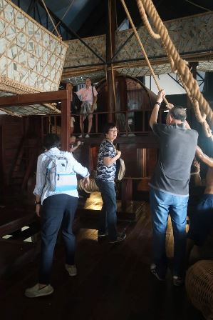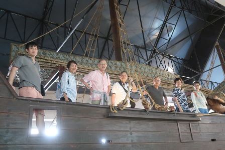 ที่มีอะไรเป็นชิ้นเป็นอันในพิพิธภัณฑ์สถานแห่งชาติ พาณิชย์นาวีนี้ คือเรือสำเภาไทยลำนี้ ที่จำลองไว้ให้ขึ้นไปเล่นกันได้โดยผมบอกพี่ ๆ น้อง ๆ ว่าเรืออย่างนี้แหละ ที่ก๋งพวกเราไปมาค้าขายแล้วบอกให้ขึ้นกันไปลองดูอาการกันดูเองนะครับ ว่าใครหมู่ใครจ่า ใครจับกัง ผมเองนั้นชัดเจนครับ ขึ้นแท่นไต้ก๋ง กลาสีเลยครับ