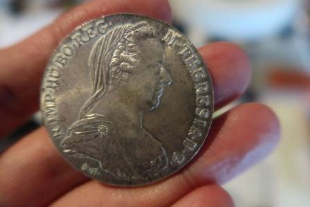 วันนี้ที่จะลงนครยาวกับหลายการที่สมุยและไชยาได้ตั๋วเรือบินบ่าย ๒ ราคาเยาว์ ก็เลยแวะไปจตุจักรตรงแผงหนังสือเก่า ได้ทราบข่าวว่าเจ้าประจำรายหนึ่งเลิกเลยแล้วด้วยเหตุปัจจุบันด้านธุรกิจ อย่างน่าเสียดายแต่แผงข้าง ๆ ตื๊อให้เอาเหรียญนี้ไว้บอกว่าซื้อมาจากเกสท์เฮ้าส์ !!! เอาก็เอา เหรียญนี้ของแม่ย่าเทเรซ่าแห่งเวียนนาที่ออสเตรียเธอเป็นแม่ยายของแทบทุกราชวงศ์ในยุโรปสมัยโน้นรวมทั้งมารีอังตัวเน็ตต์ ที่ไปอยู่กับหลุยสที่ ๑๖ จนจบราชวงศ์ หลังจากแวะโน่นนี่ไปเรื่อย ๆ รวมทั้งคุณจุ๋ม คนร้อยลูกปัดสวยที่หลายคนสนใจจึงไปขอเบอร์โทรมาไว้แล้ว ใครต้องการ ถามได้นะครับ