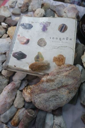 สุดท้าย ผ่านแผงตาเหวากับป้ามะยม ที่เป็นหนึ่งในตำนานการขุดขายลูกปัดทั้งที่อู่ทองและทั่วภาคใต้ถามข่าวถึง ลูกชายบอกว่าแม่ไปหลายเดือนแล้ว ส่วนพ่อนั้นติดเตียงมาระยะใหญ่ผมได้ขวานหินยักษ์จากเลาขวัญมาหนึ่งเล่ม กับ ๒ จิ๋วส่วนหนังสือรอยลูกปัดเล่มนั้น ที่ผมมอบให้ไว้ตั้งแต่แรกออกสภาพอย่างที่เห็น ก็ยังมีคนมาตื๊อขอซื้อครับ