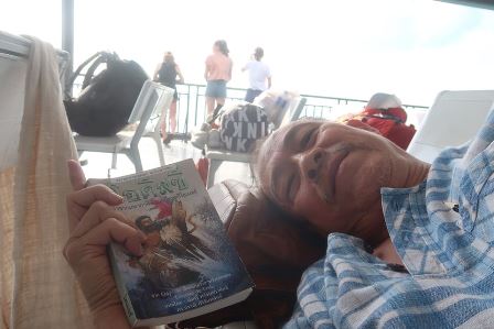 เพิ่งเสร็จการหารือที่ทีปภาวันตะกี้นี้กำลังนั่งเรื่องกลับฝั่งดอนสักเพื่อไปสวนโมกข์ไชยาด้วยเวลาเพียง ๓ ชม.บนสมุย รอบนี้โดยเมื่อเช้าคว้าหนังสือมาเผื่ออ่าน ๔ - ๕ เล่ม เริ่มเรือออกก็อ่านผ่านได้ ๒ เล่ม เน้นเรื่องเมืองนครเพื่อประกอบการทำเรื่องรอยประวัติศาสตร์ตอนเหนือของนครนำร่องแล้วเริ่มเล่มโอดิสซีที่่ว่าด้วยการฝ่าภัยในทะเลเมดิเตอเรเนียนของยูลิสซิส เจ้าของความคิดม้าไม้เมืองทรอยเพื่อช่วยเฮเลนมาให้เกลอรักเมนิเลอัส แล้วโดนนางไม้คาลิปโซเอาไปจำบังไว้ในถ้ำขณะที่ตัวเองนั้น เหมือนอยู่ท่ามกลางนางไม้จากย่านนั้นมาล้อมบนเรือประเดี๋ยวจะเจอกอีกคณะใหญ่ เพลินธรรม นำชม ที่มาตั้งขบวนให้สวนโมกข์ไชยากัน ๓ วันแล้ว