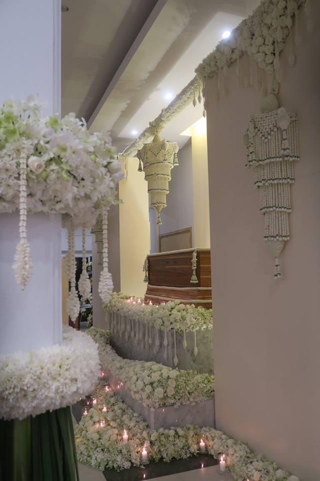 พี่ตั้วให้พี่เอ๊าะจัดดอกไม้แบบเรียบ ๆ เป็นไทย ๆ ตามที่แม่ชอบ และเราเคยจัดตอน ๘๐ ปีแม่ที่สยามสมาคม โดยพี่เอ๊าะยังรักษากุหลาบตามที่แม่ชอบไว้ด้วย