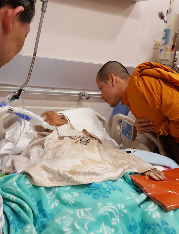 "กระทั่งกลางเดือนกรกฏาคมที่ผ่านมา แม่รู้สึกอึดอัดหายใจไม่สบาย จึงได้ให้พาไปหาหมอและเข้าพักรักษาตัวด้วยมีภาวะติดเชื้อในปอดก่อนที่จะพัฒนาเป็นภาวะช็อคจากการติดเชื้อในกระแสเลือดจนมีความล้มเหลวของอวัยวะต่าง ๆ ทั้งหัวใจ การหายใจ โดยครั้งนี้มีผลถึงไตด้วย จึงทำให้การฟื้นคืนของแม่เป็นไปได้ยากกว่าทุก ๆ คราว แต่ก็ค่อย ๆ ดีขึ้นอย่างต่อเนื่องจนรู้ตัวดี หายใจได้เอง พร้อมกับชูสองนิ้วเป็นสัญญลักษณ์ว่าสู้ได้เพื่อลูก ๆ แม้บางครั้งจะส่ายหน้าเพื่อบอกอะไรบางอย่างให้เรารับรู้ กระทั่งเย็นวันที่ ๖ กันยายน ๒๕๕๙ แม้ใจแม่จะยังสมบูรณ์พร้อม แต่เกิดภาวะติดเชื้อจนช็อคซ้ำและเกินกว่าจะกู้ได้แม้แพทย์พยาบาลจะได้พยายามอย่างที่สุด โดยในระหว่างเวลา ๐๐.๑๐ น. – ๐๐.๔๕ น. ของวันที่ ๘ พระภิกษุ ๓ รูปจากวัดสุทธิวราราม วัดโบสถ์ และ วัดสุนันทวนาราม ได้เมตตารับอาราธนานิมนต์มาเยี่ยมแม่ ให้แม่ถวายผ้าอาบน้ำพระ แล้วเจริญพระพุทธมนต์พระปริตที่ประกอบด้วยบทอัญเชิญเทวดา มหานมัสการ ไตรสรณคมน์ นมะการสิทธิคาถา นโมการะอัฏฐกะ มงคลสูตร เมตตปริตร อภยปริตร โอสถปริตร โพชฌังคปริตร สัพพมังคลคาถา เทวตาอุยโยชนาคาถา อุททิสสนาธิฏฐานคาถา และ แผ่เมตตา ซึ่งปรากฏว่า ณ ขณะที่พระภิกษุเริ่มสาธยายโพชฌังคปริตร ชีพจรของแม่ก็หยุดสนิท ณ เบื้องหน้าคณะสงฆ์ ท่ามกลางพวกเราทุกคนที่รายล้อมอยู่พร้อมหน้าแม่ และเมื่อถึงเวลาแห่งการบำเพ็ญกุศลตลอด ๙ วัน ระหว่างวันที่ ๘ – ๑๖ กันยายน ณ วัดธาตุทอง พระวิหารหลวง กระทั่งฌาปนกิจในวันอาทิตย์ที่ ๑๗ กันยายน ก็ได้รับเมตตาจากพระภิกษุมหาเถราจารย์จากหลากหลายสำนักทั่วประเทศมาเป็นองค์ปรารภธรรมให้ญาติมิตรที่มาร่วมการกุศลเพื่อแม่"