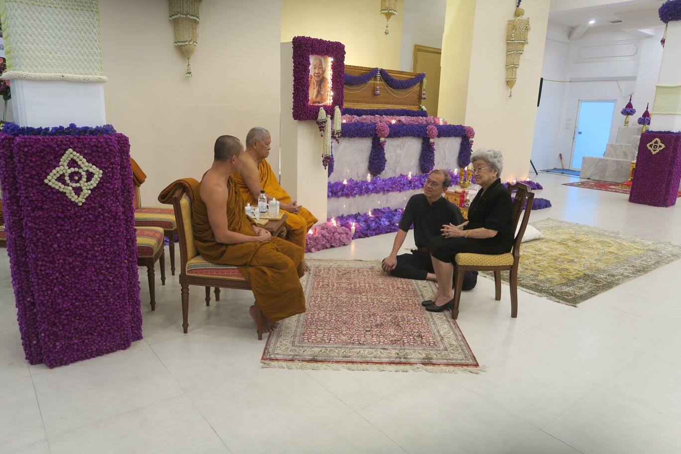 ส่วนองค์แสดงธรรมที่มีคนมาถามกันมากว่าท่านมาจากไหน ยงลูกตาผาด ที่กำลังจะเป็น MD ธนาคารกรุงไทย และ แม่กับพ่อช่วยดูแลตั้งแต่เล็ก และพวกเราก็ให้ขี่คออุ้มเล่นกันมา ถึงกับเข้ามาบอกว่าเสียงท่านยังกะได้รับน้ำเย็นราดรด เต้ยจึงพาเข้าไปกราบเผื่อว่าจะได้เป็นประโยชน์กันให้ยิ่ง ๆ ขึ้น เช่น ยงก็ได้พบพระดี ๆ ท่านก็จะได้ญาติโยมดี ๆ ไปเพิ่มเติมอีก วัดของท่านอยู่ที่ศรีสะเกษ กำหนดให้เป็นสวนโมกข์อีกแห่งหนึ่ง ท่านนับถือศรัทธาท่านอาจารย์พุทธทาสมาก ๆ โดยท่านนั้นเป็นหนึ่งในศิษย์รูปสำคัญของพระอาจารย์สมภพ โชติปัญโญ หนึ่งในครูบาอาจารย์ใหญ่แห่งภาคอีสาน หากจะให้นับก็เป็นสายสำคัญที่ ๓ รองจาก พระอาจารย์มั่น-หลวงตามหาบัว กับ พระอาจารย์ชา-วัดหนองป่าพง เต้ยแวะไปพัก นอน หารืองาน รวมทั้งนำคณะไปปฏิบัติภาวนาที่วัดท่านหลายรอบ ทุกคนที่ไปด้วยชอบมาก ๆ รวมทั้งพี่ตาด้วยครับ ตอนนี้วัดท่านอยู่ในโครงการวัดบันดาลใจ ร่วมกับวัดศรีทวี พิเศษสุดสำหรับเมื่อวานนี้ ท่านชวนทุกคนนั่งสมาธิภาวนาไปด้วยเลยครับ คนที่มางานแม่จึงได้ครบทั้ง ทาน ศีล สมาธิ และ วิปัสสนา ตามหลักที่พระพุทธเจ้าท่านสอนไว้ครับ