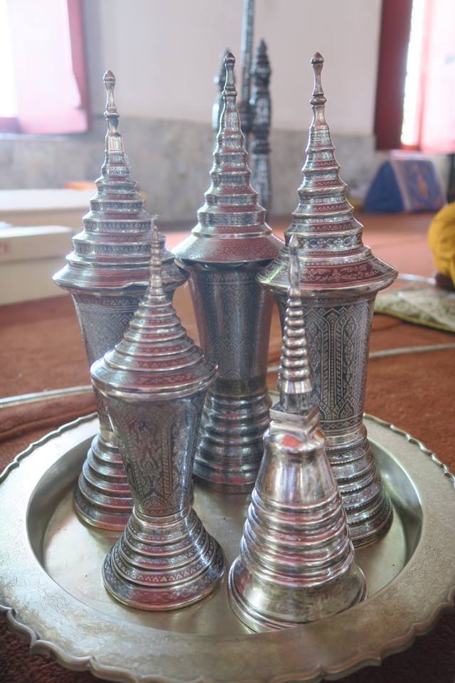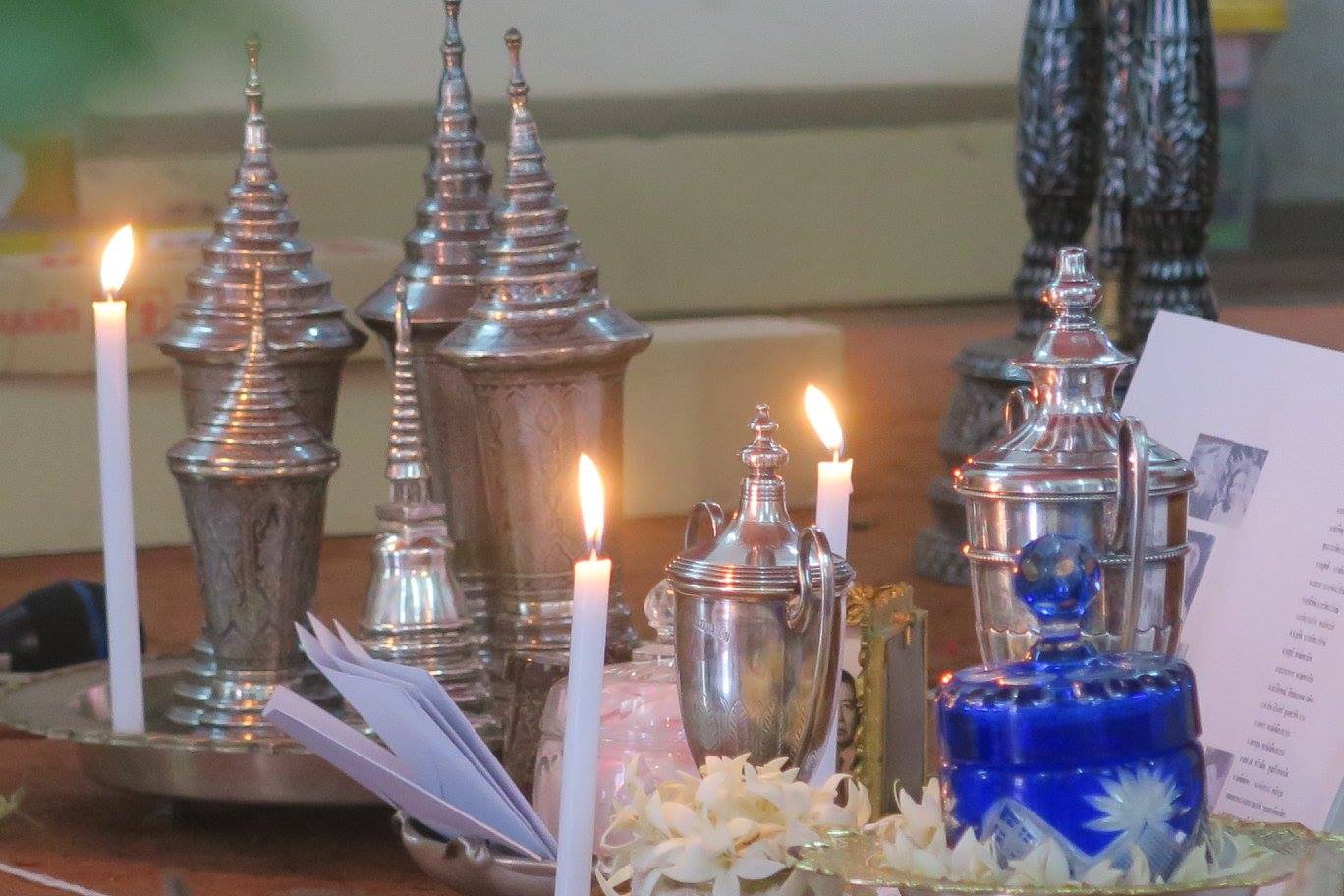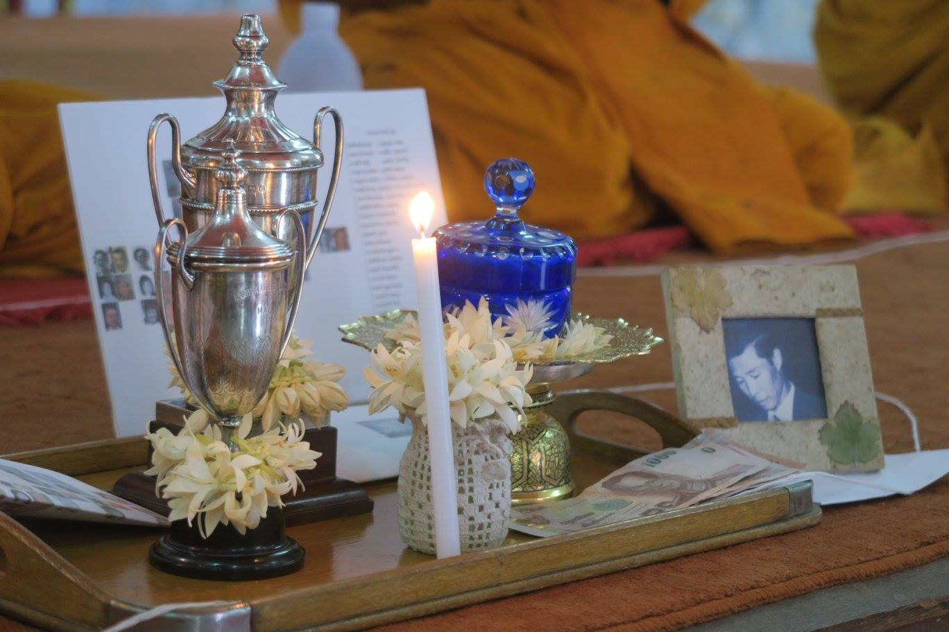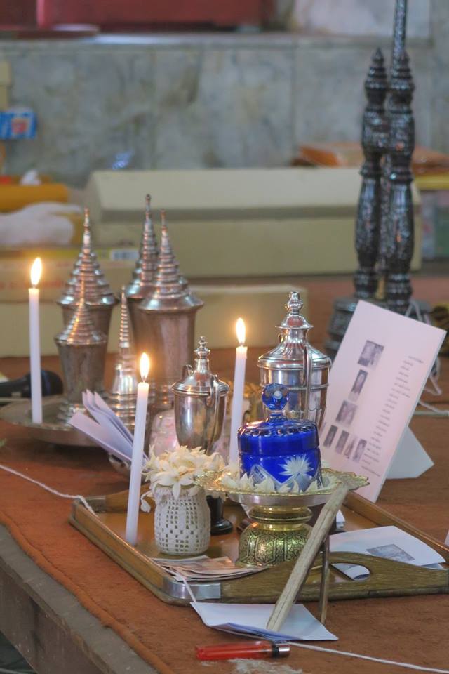 โกศถมของคุณทวด คุณตา คุณยาย ลุงสิทธิ์ ที่พี่ตุ่มเก็บรักษาไว้ พี่ติ๋มเป็นคนเอามา ส่วนของพ่อ-แม่-พี่เติบนั้น พวกเราเอามาครับ ส่วนการบูชาพระ อาราธนาศีล อาราธนาธรรมนั้น งานนี้เต้ยทำเองหมดเลยครับ