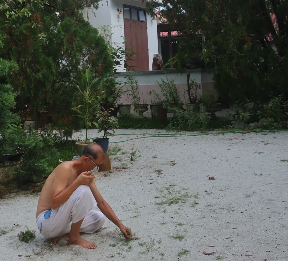 คือเช้า ๆ ของวันว่าง จะไม่นอนยาว แต่รีบลงไปรดน้ำต้นไม้