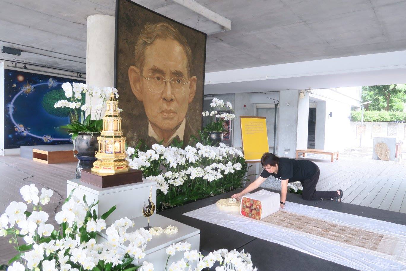 สถานที่เราจัดเรียบ ๆ พร้อมขยับทันทีเพราะตอนเย็นจะมีงาน ๑๕ วันพระเจ้าอยู่หัวซึ่งเราจัดเต็มเป็นประธานของพื้นที่ ซึ่งถือว่าเป็นมงคลยิ่งของแม่ด้วยนะครับ ตอนนี้ทุกวันน้องติ่งจะตื่นมาร้อยมาลัยดอกปีปที่แม่ชอบ แล้วจัดถวายในหลวงเป็นประจำด้วยครับ
