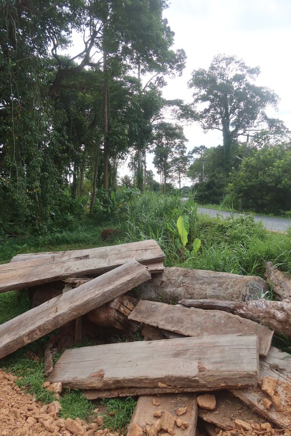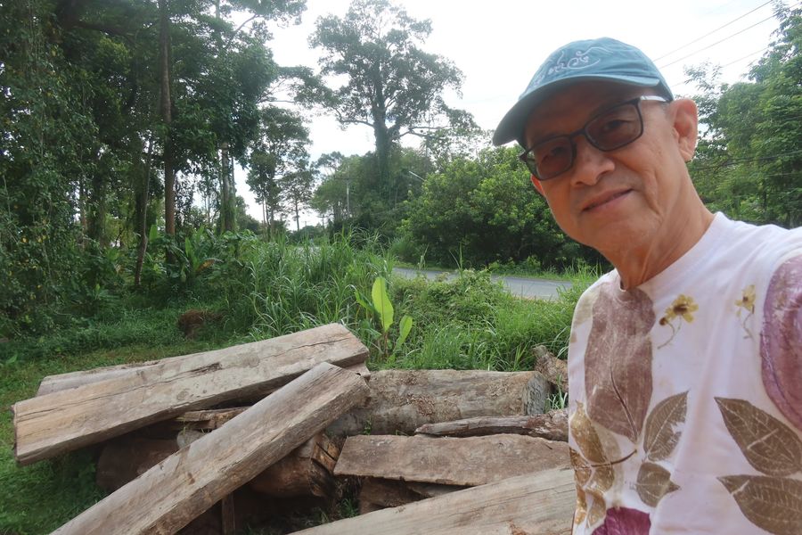 ไม้กองนี้ที่ตัดจากยางนาที่ยืนต้นตายมาหลายปี
