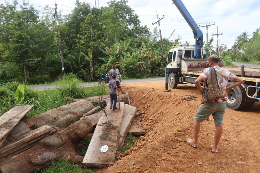 ก็เลยให้ตัดเป็นทั้งต้นตอ และแผ่นขนาดยกยาก ยาวราว ๔ - ๕ เมตร