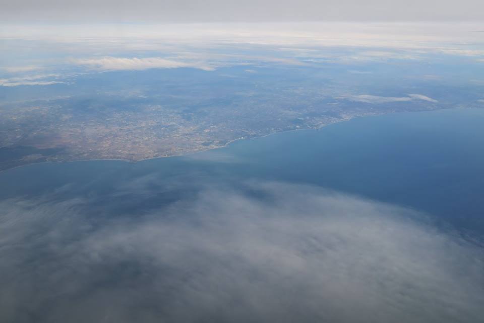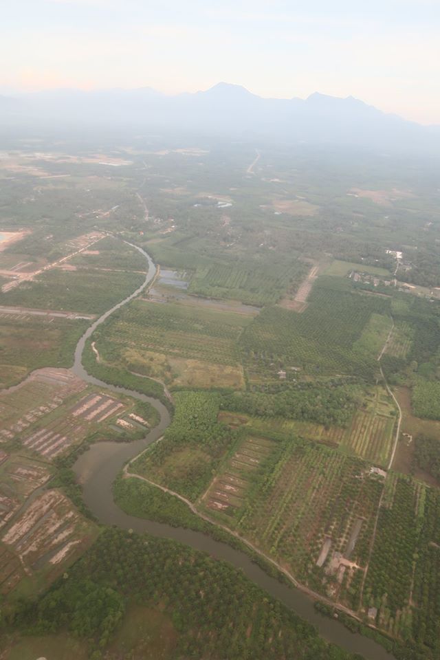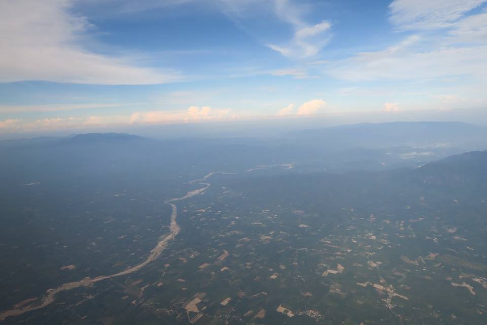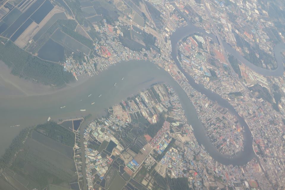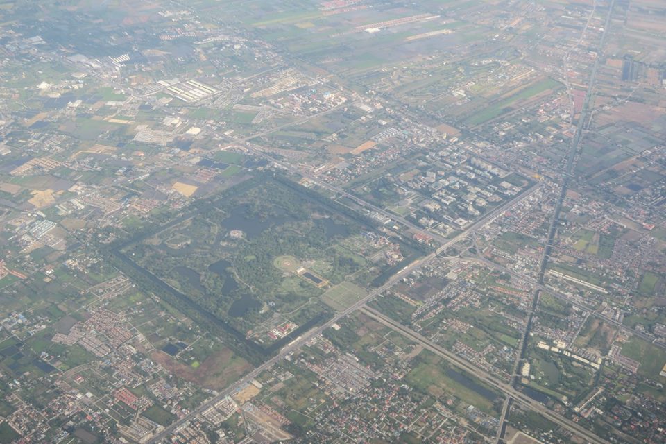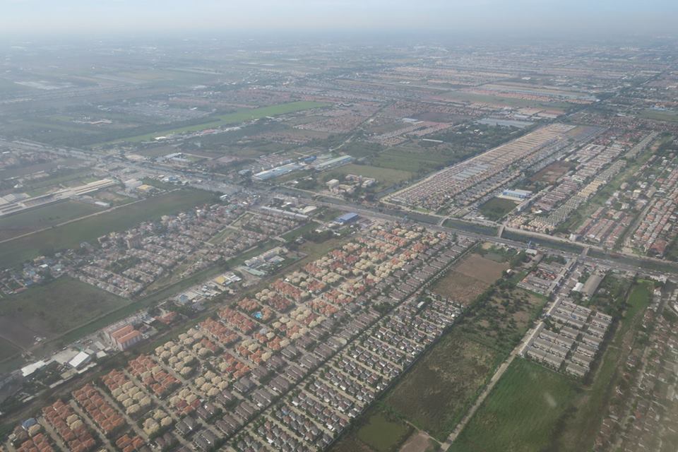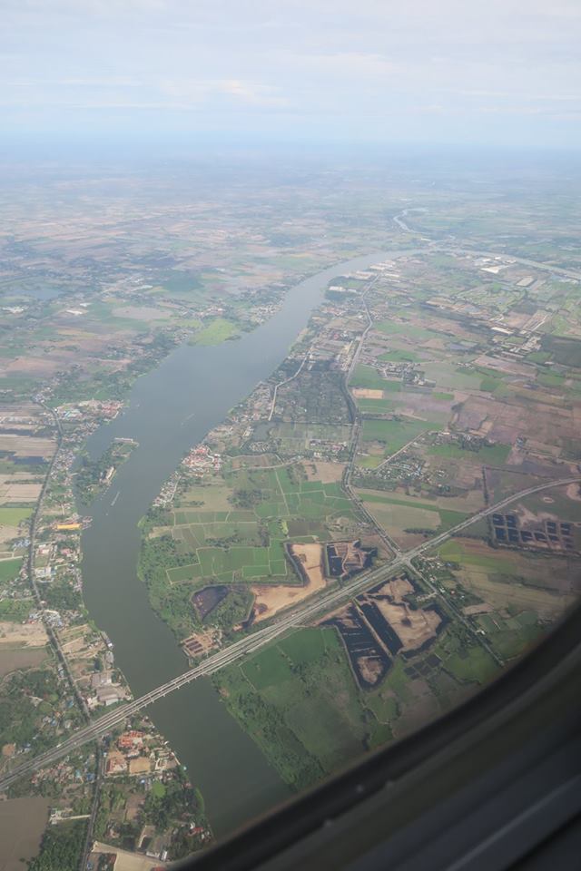 ขาขึ้นจากเมืองนครเมื่อเช้านี้ นอกจากฟ้าสวยเกือบตลอดทางแล้ว ผืนแผ่นดินก็ชุ่มชื่น แถมเครื่องวันนี้บินแตกต่างจากทุกครั้ง คือเลียบชายฝั่งบนแผ่นดินขึ้นไปเรื่อย ๆ ก่อนที่จะลงทะเลที่ขนอม ให้ได้เห็นเกาะพะลวย อ่างทอง แล้วก็เกาะเต่า โดยไม่ได้เห็นอ่าวบ้านดอน แหลมโพธิ์ ท่าชนะ หลังสวน ชุมพร ตลอดทั้งประจวบ เห็นอีกครั้งก็เป็นแหลมผักเบี้ยเมืองเพชร ปากน้ำแม่กลองลิบ ๆ จนมาเห็นปากน้ำท่าจีนที่มหาชัยแล้วไล่ขึ้นไปเห็นพุทธมณฑลกับศาลายาก่อนที่จะเข้าเขตบางบัวทอง เห็นสถานีรถไฟฟ้ากับการขยายตัวเข้าไปในทุ่งของบ้านเมืองรอบใหม่ ไกลโพ้นออกไปที่สุดสายคลองชลประทานน่าจะเป็นอู่ทอง แล้วก็ถึงเจ้าพระยา พอดีผ่านศูนย์ศิลปาชีพ แล้วเครื่องก็อ้อมวกไปฟากตะวันออกที่ยังเต็มไปด้วยทุ่งนา มีแปลงบ้านจัดสรร โรงงาน สนามกอล์ฟ และ ศูนย์ราชการเกิดขึ้นมากมาย รวมทั้งวัดก็พอมีประปรายอยู่ในนั้น