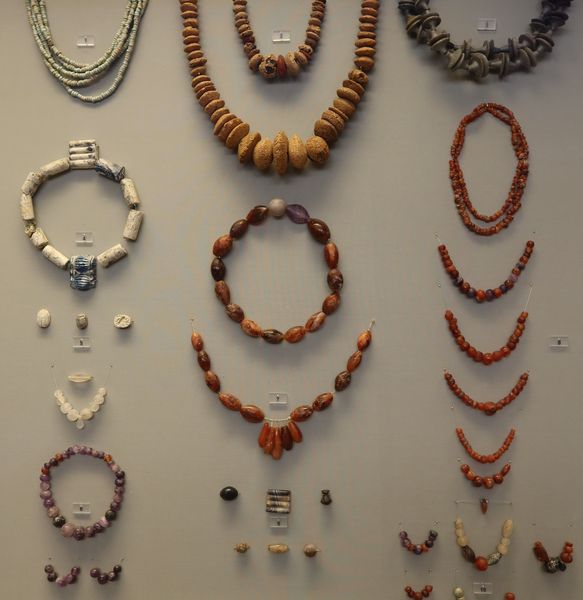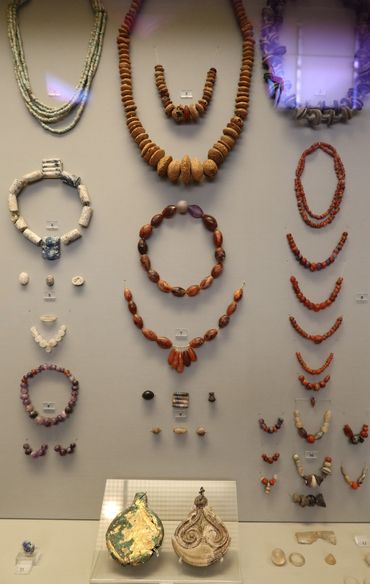 แผงนี้ ลูกปัดอำพัน หิน และแก้วน้ำเคลือบ ๓,๕๐๐ ปีปู้น