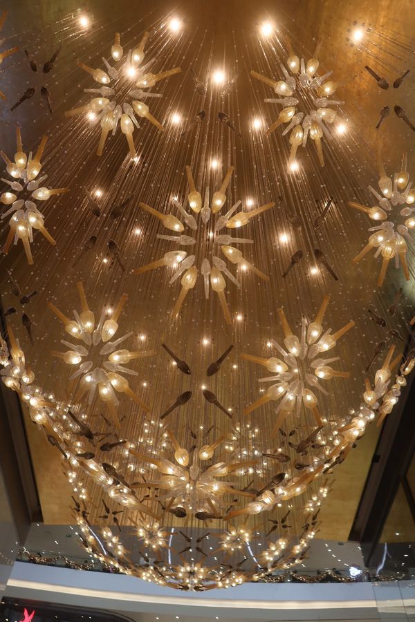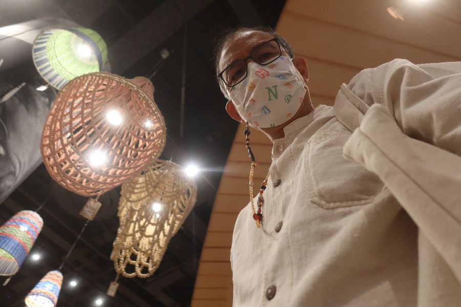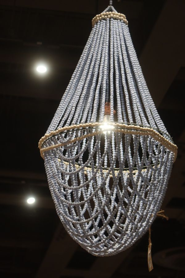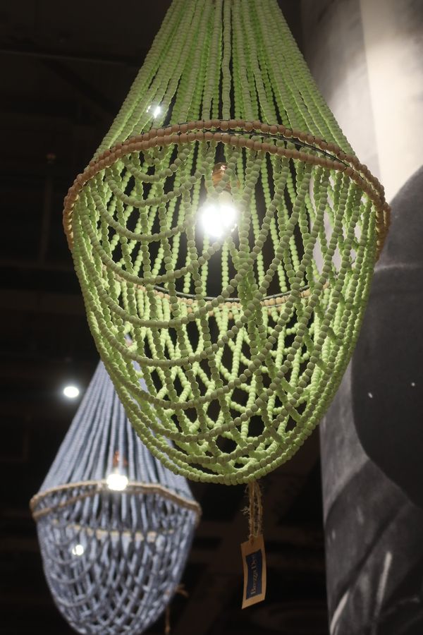 โคมไฟชุดหนึ่ง เขาร้อยลูกปัดน่าจะทำจากเม็ดไม้หลายลีลาดูสวยดี