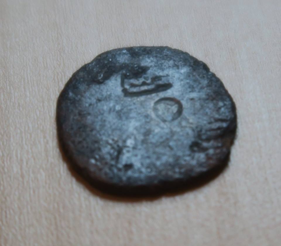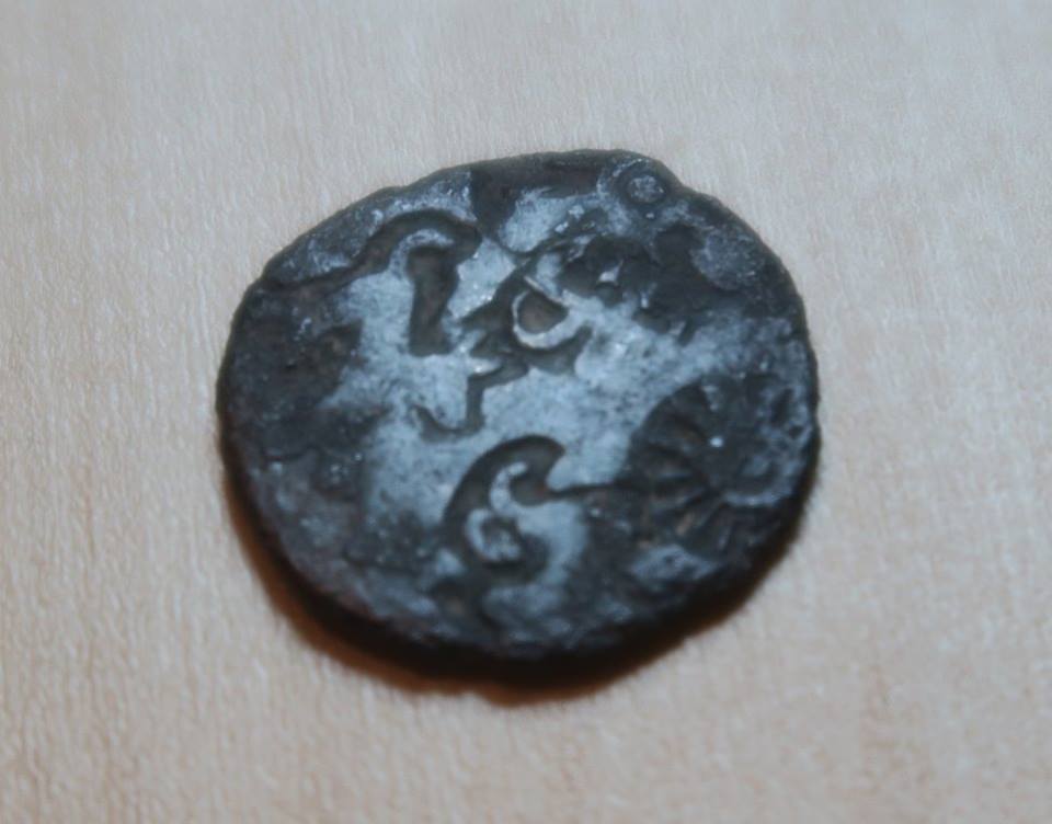 ด้านหนึ่งเป็นอักขระพราหมี ๔ ตัว