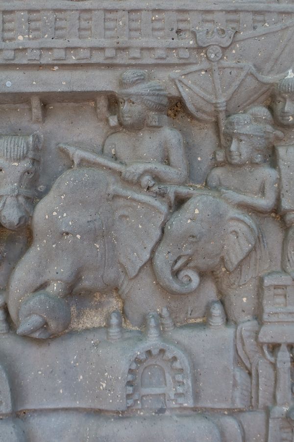 ตาม #รั้วกำแพงมหาสถูปแห่งภารหุต มีแกะสลักรูปช้างชูช่อมาลัยสายสร้อย