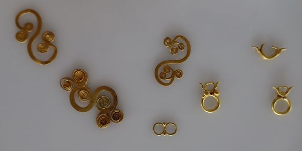 ๑) ที่ทำด้วยทองคำมีจำนวนไม่น้อย ในหลากหลายลักษณะตามภาพ