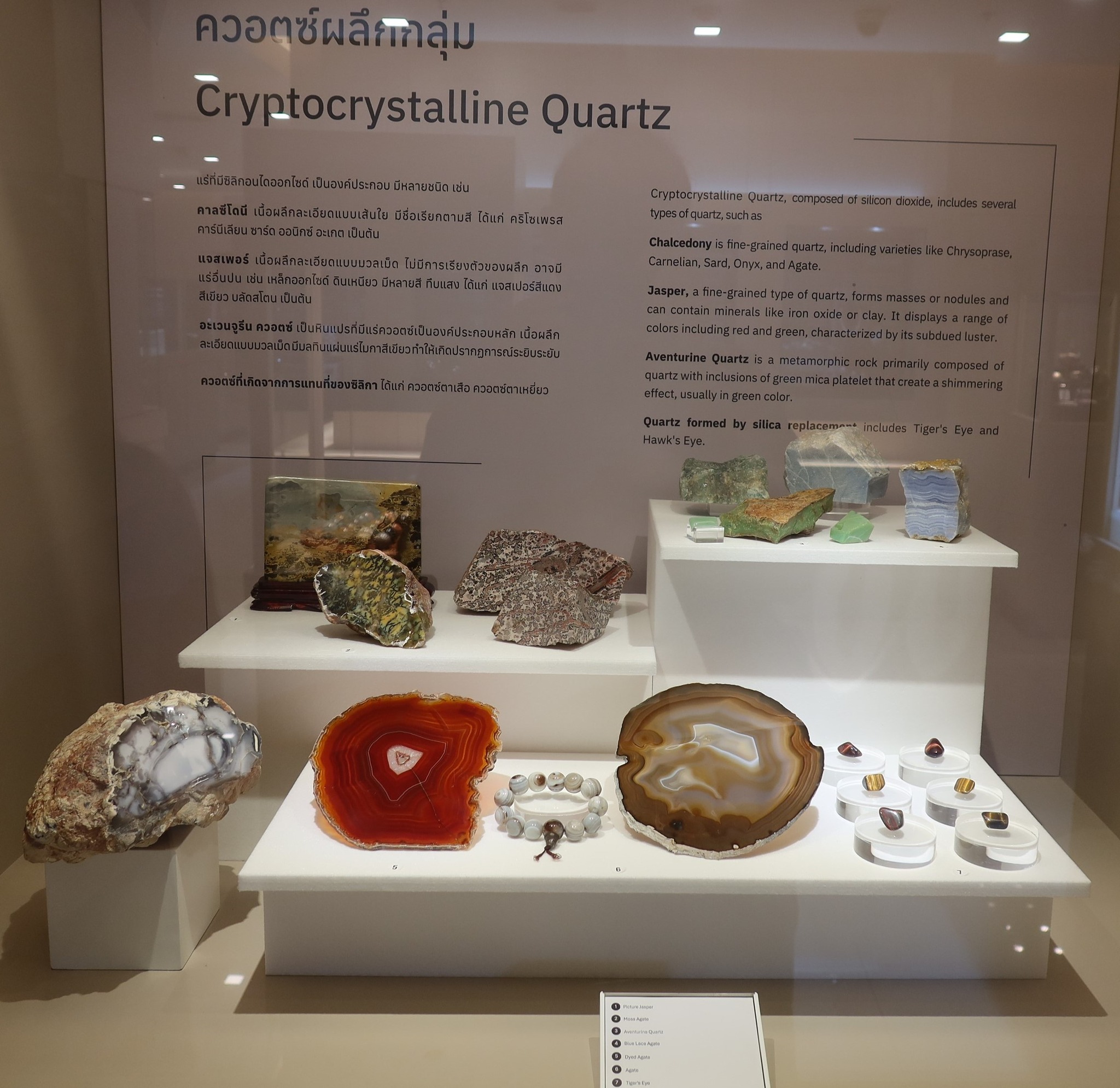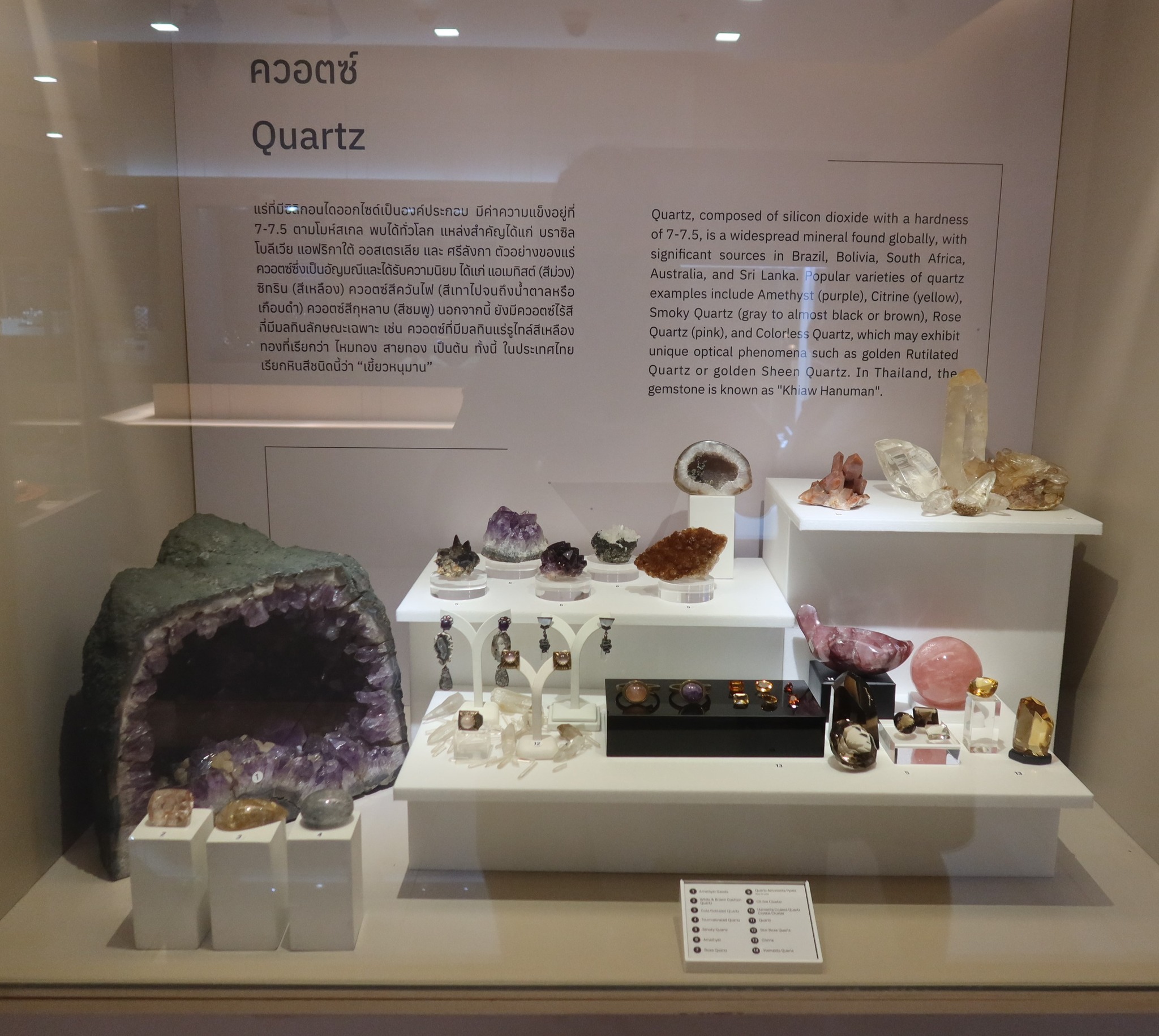 ในสามตู้แสดงควอทซ์ ที่รวม #อมิทิสต์ #อะเกต #คาร์เนเลียน นั้นน่าสนใจ